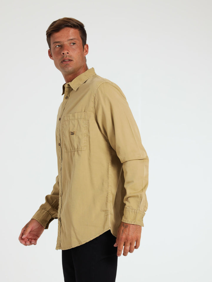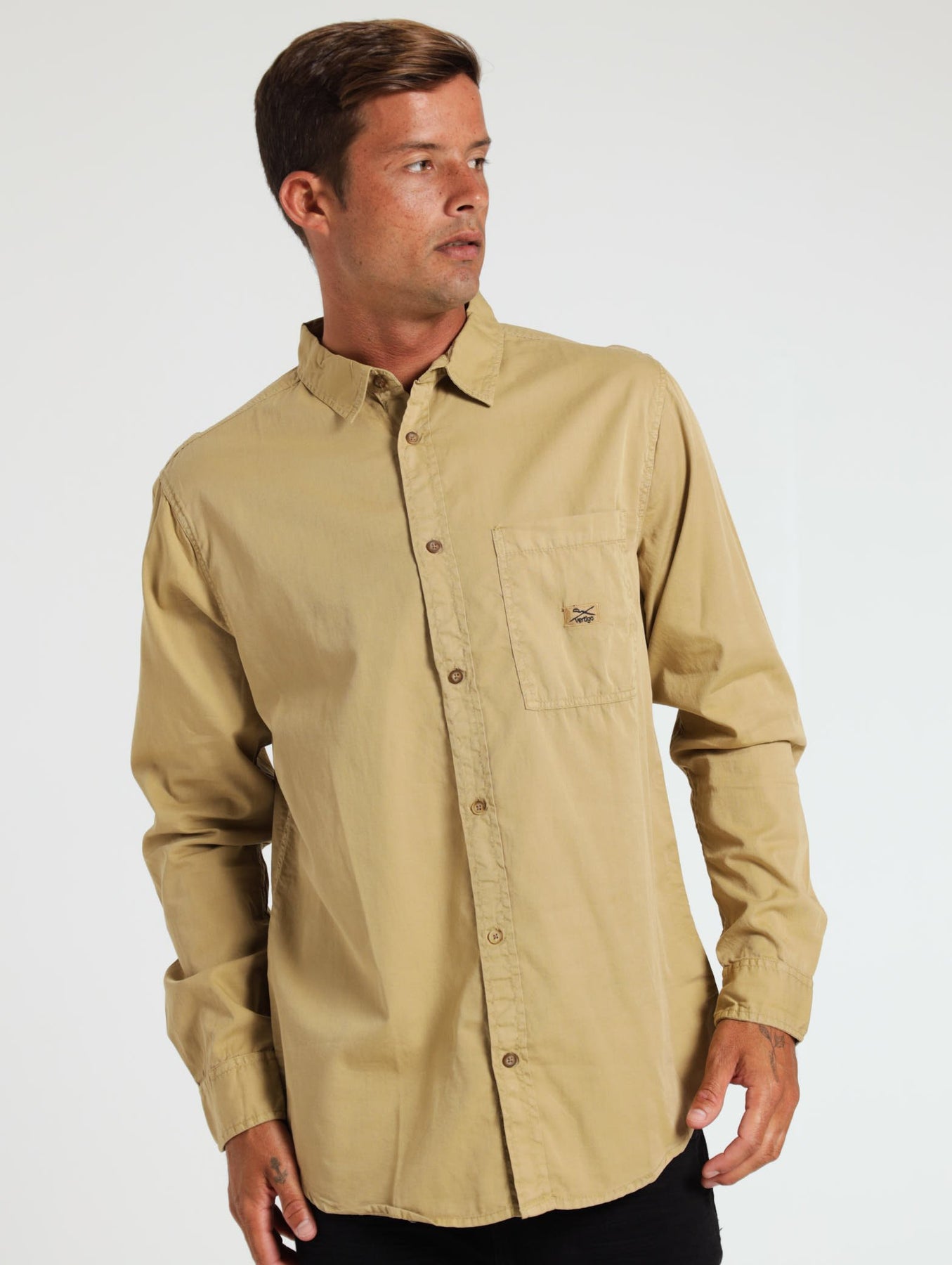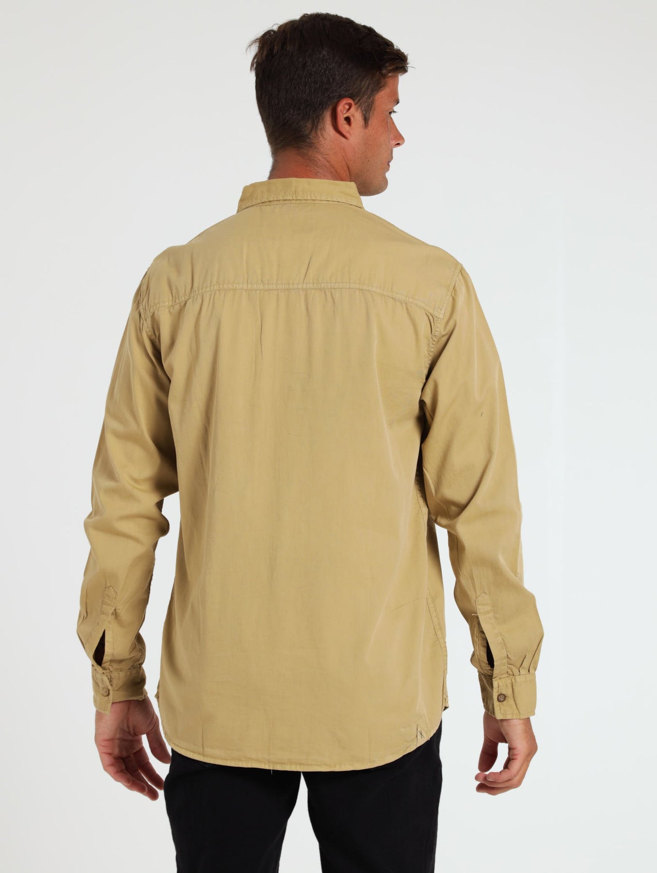 Men's Long Sleeve Twill Pigment Dyed Shirt - Tan