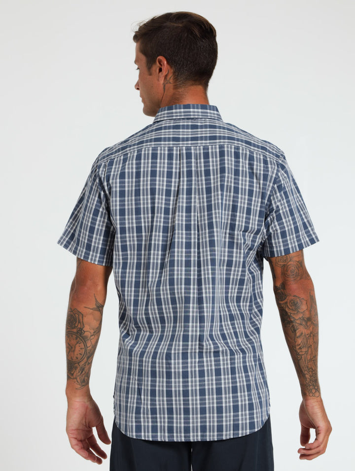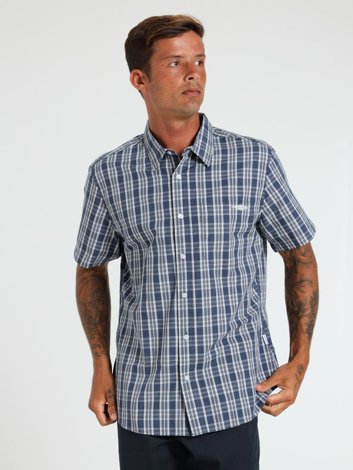 Men's Short Sleeve Check Shirt - Dark Blue