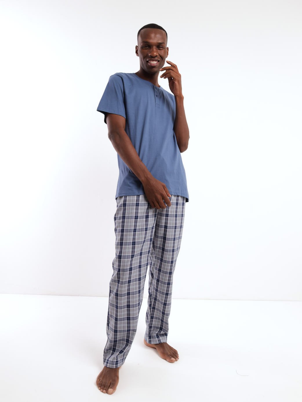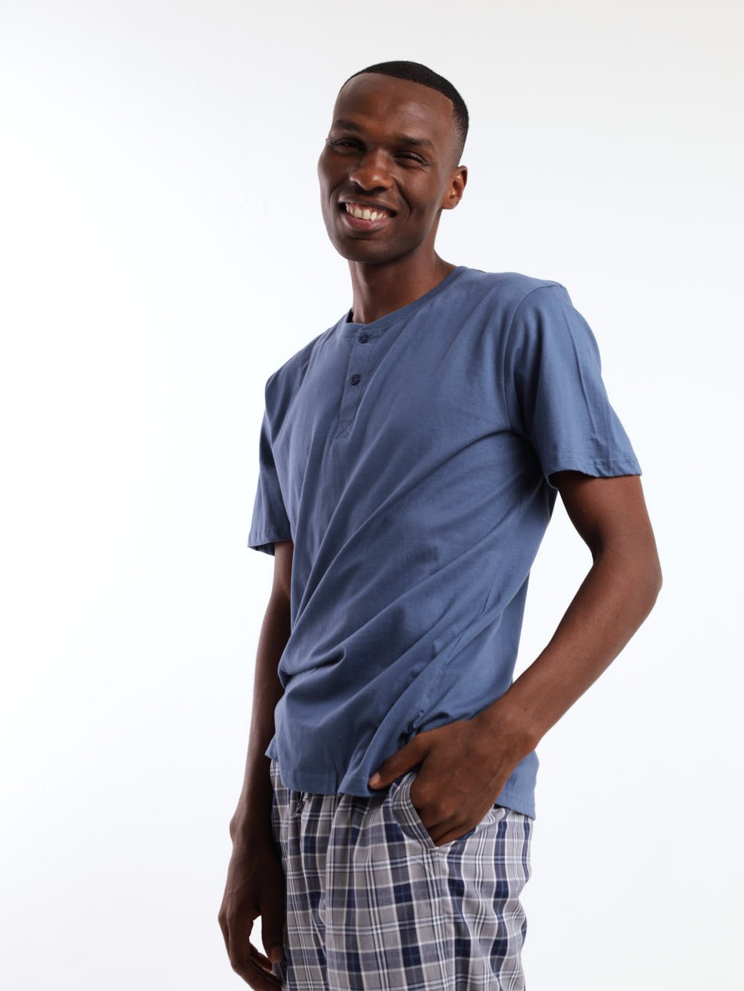 Men's Short Sleeve Sleepwear Henley Top - Indigo
