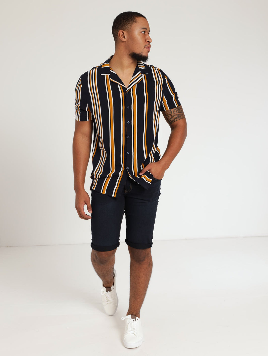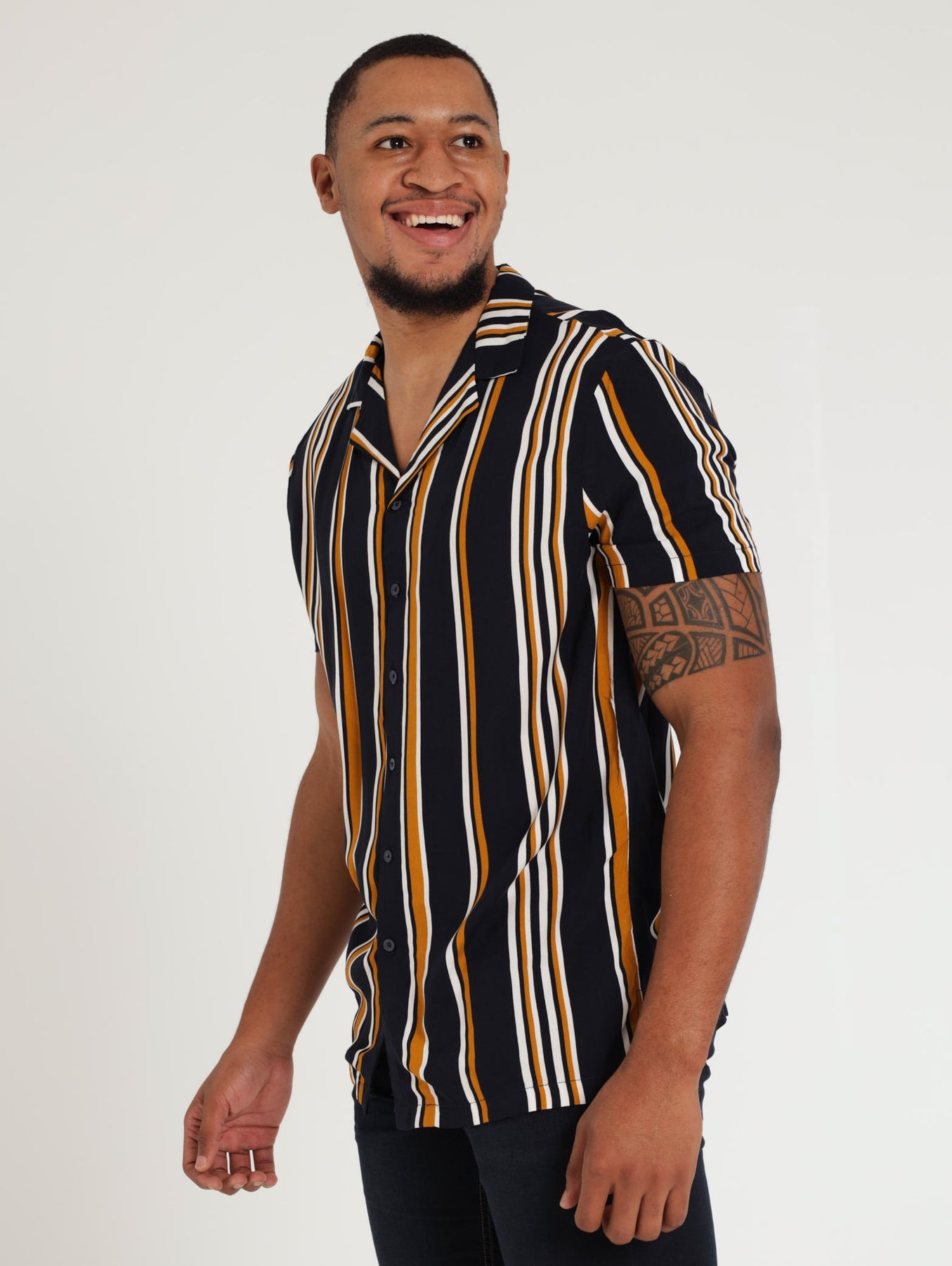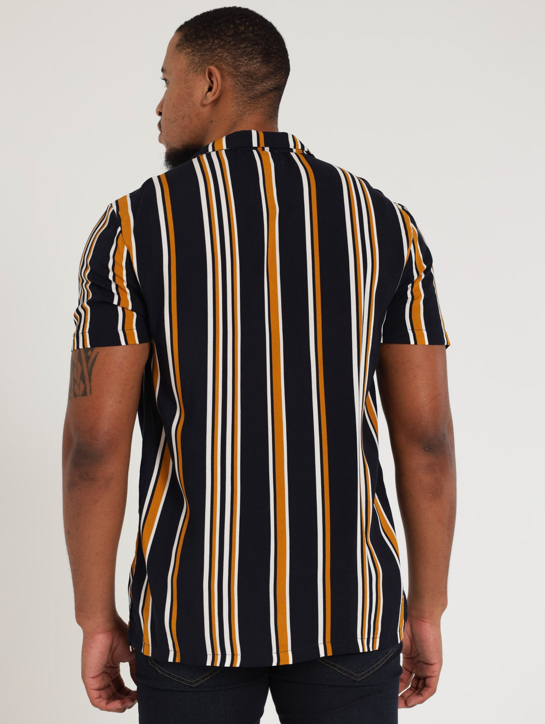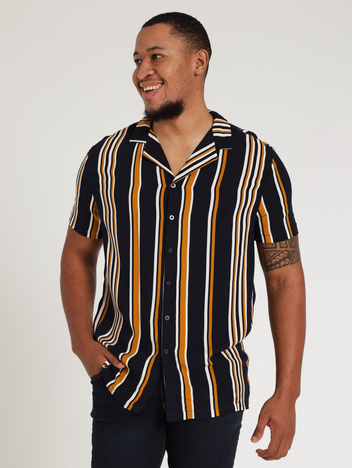 Men's Short Sleeve Viscose Stripe Shirt - Navy