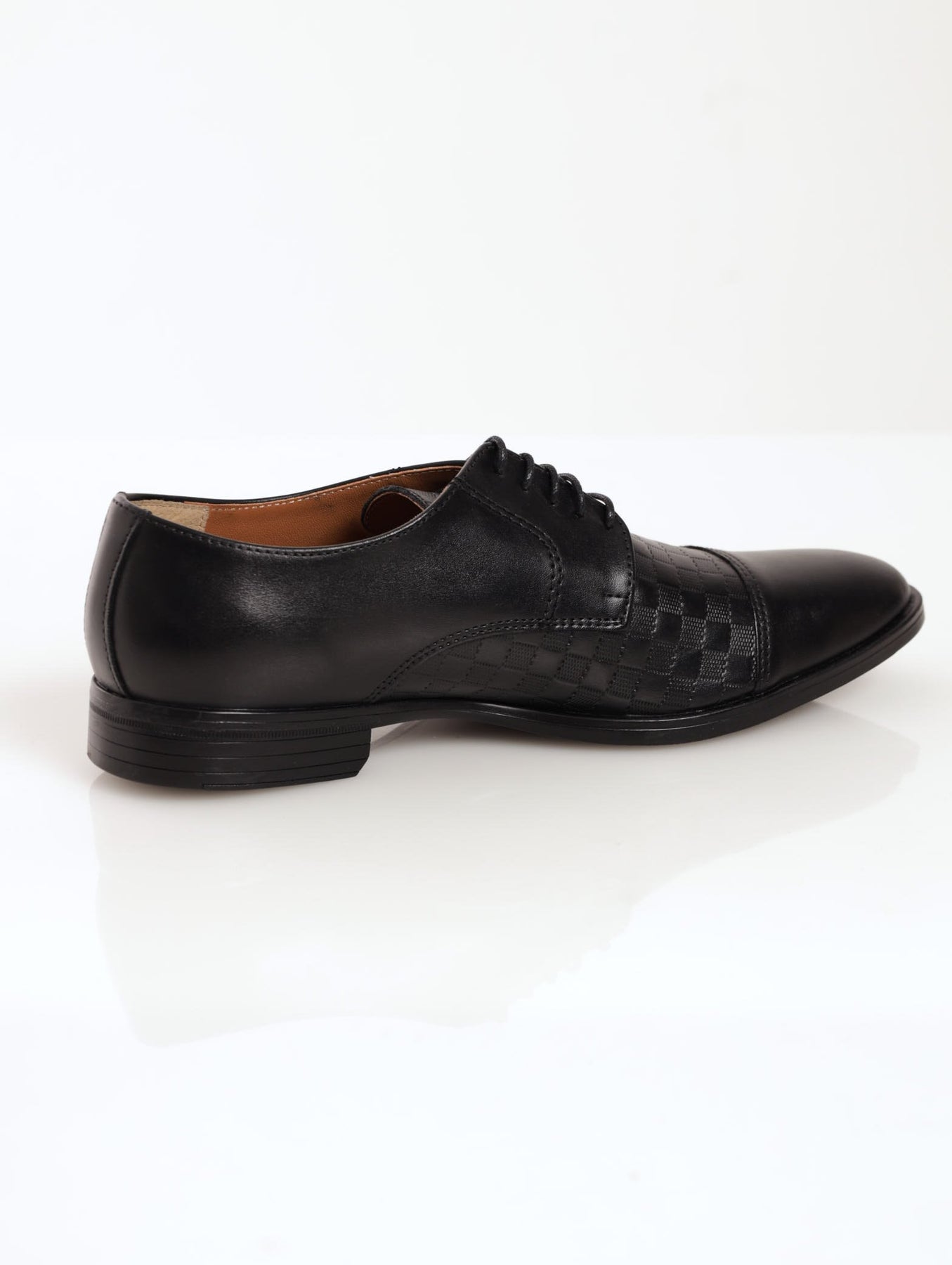 Men's Textured Detail Vamp Shoe With Plain Toe Cap - Black