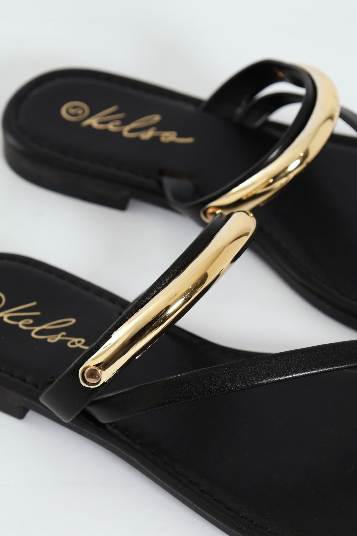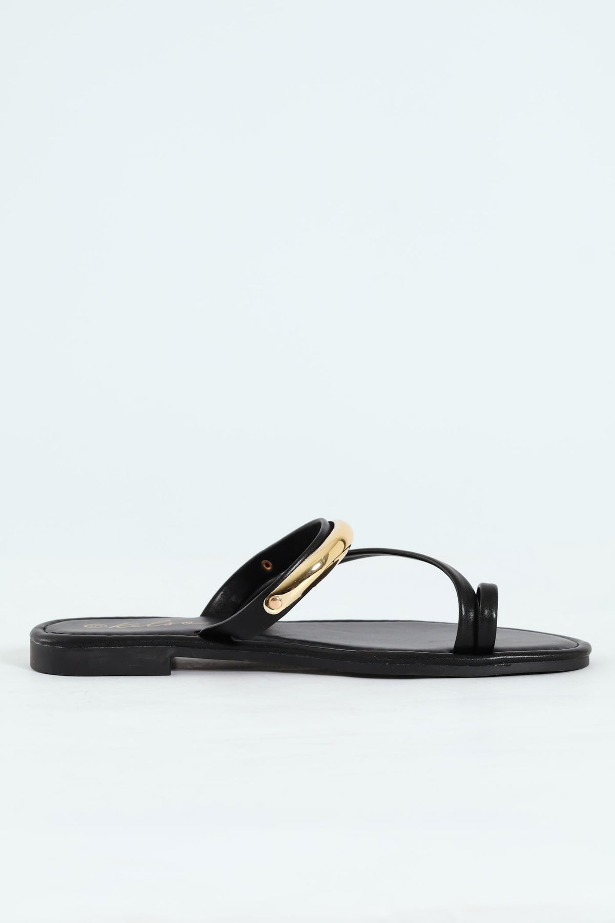 Metal Bar Detail Toe Post Sandal - Black