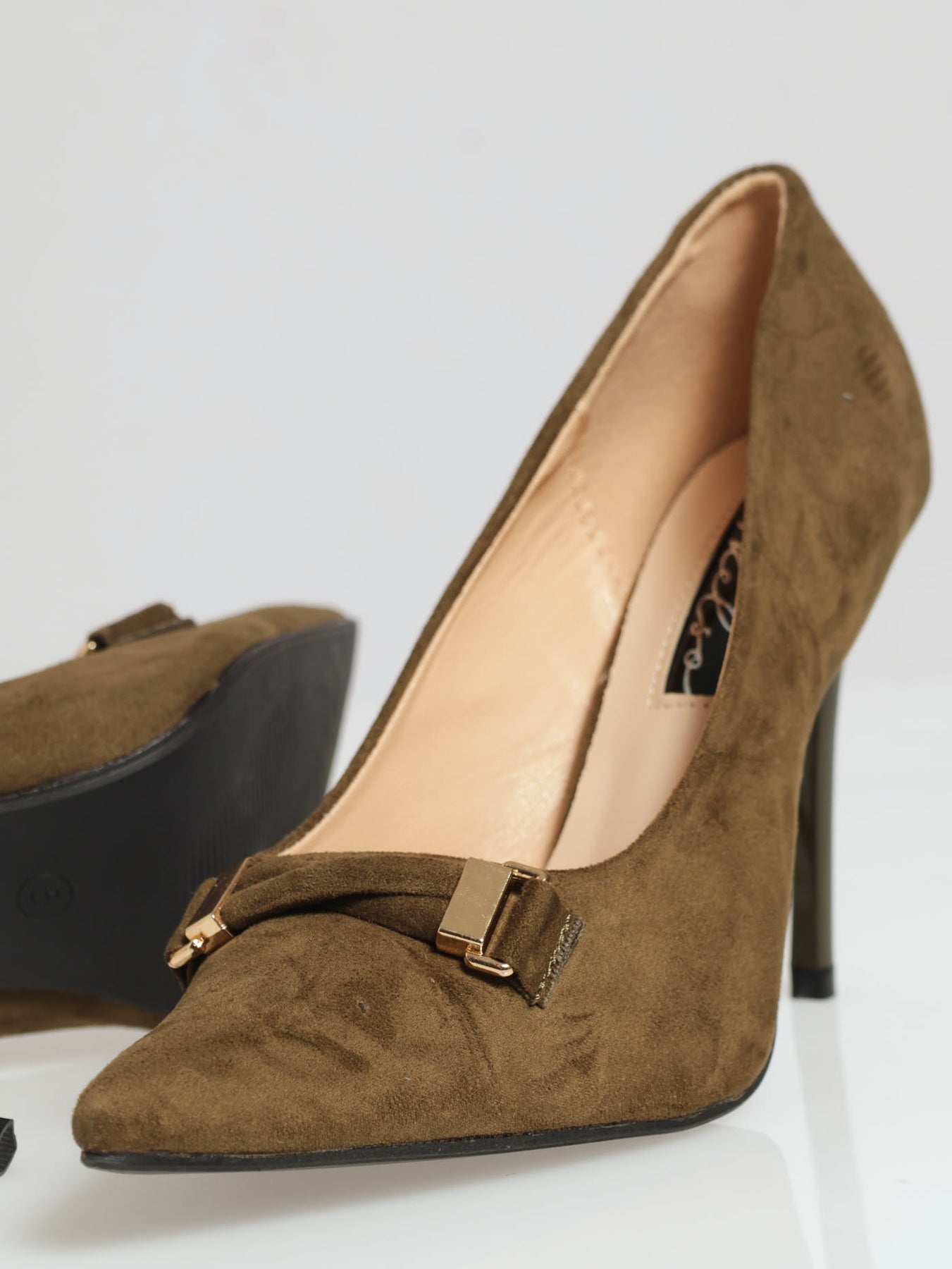Microfibre Twisted Strap Trim Stilletto Court Heel - Olive