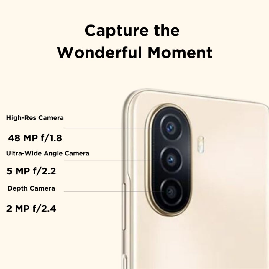• Camera: Rear- 48MP AI Triple Camera, 2MP, 2MP; Front- 8MP