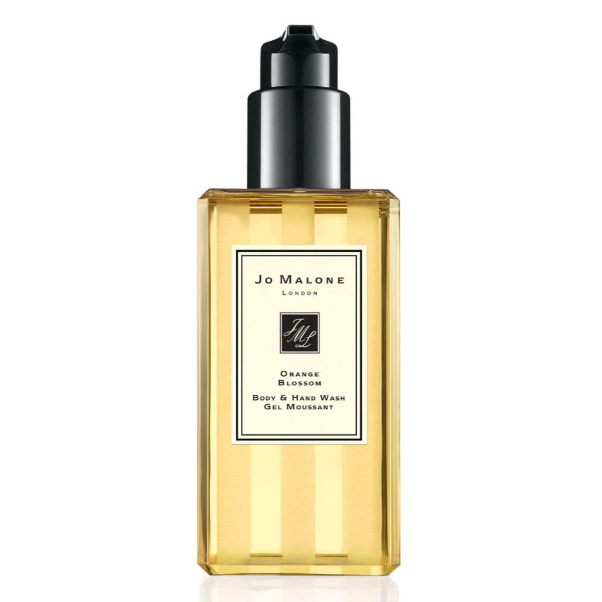 Boost your shower ritual with a sparkling burst of Orange Blossom Body & Hand Wash. The formula is respectful to the skin, containing natural origin glycerine and meadowfoam seed oil. The crystal clear gel gently cleanses as it transforms into a rich lather to leave body and hands feeling conditioned and soft. The shimmering notes of Jo Malone London's signature floral fill the bathroom, immersing you in the bright fragrance of clementine flower. A heart of orange blossom and water lily, with warm undertones of orris and balsamic vetiver.