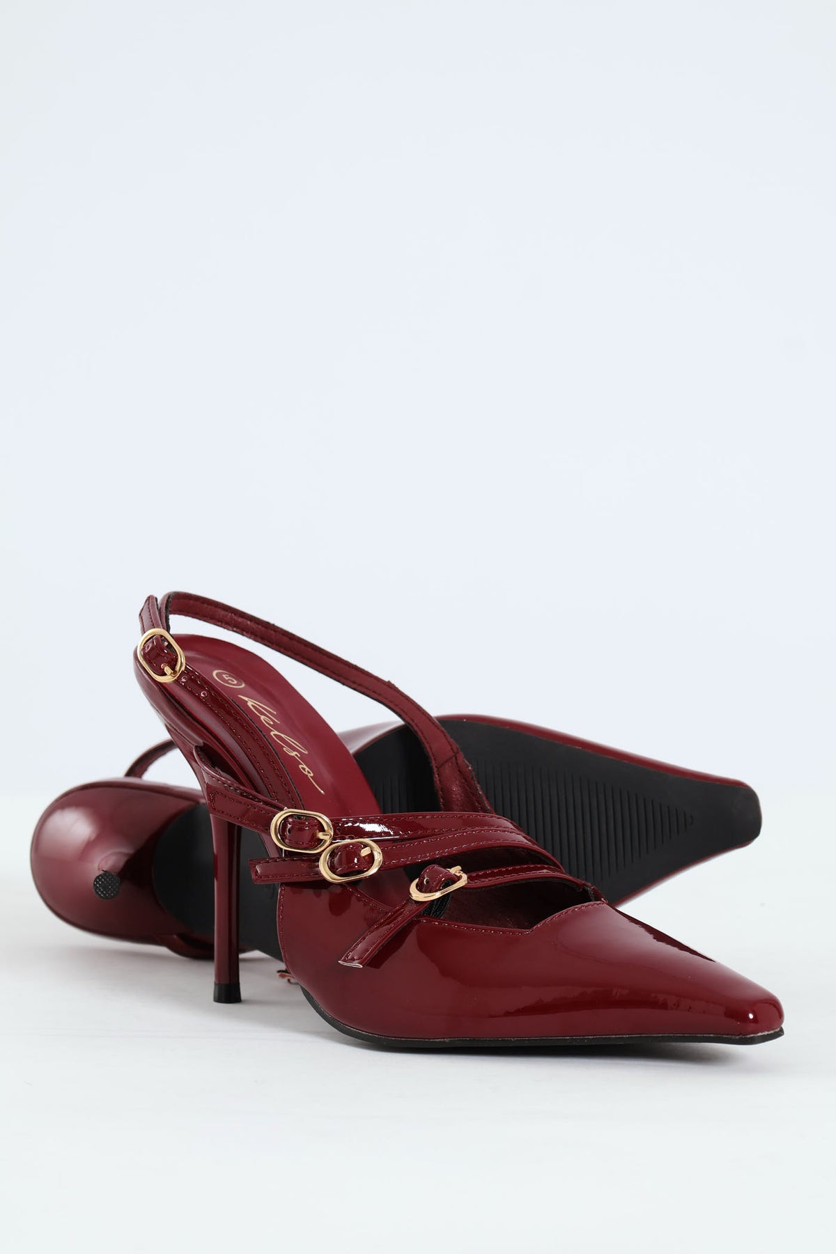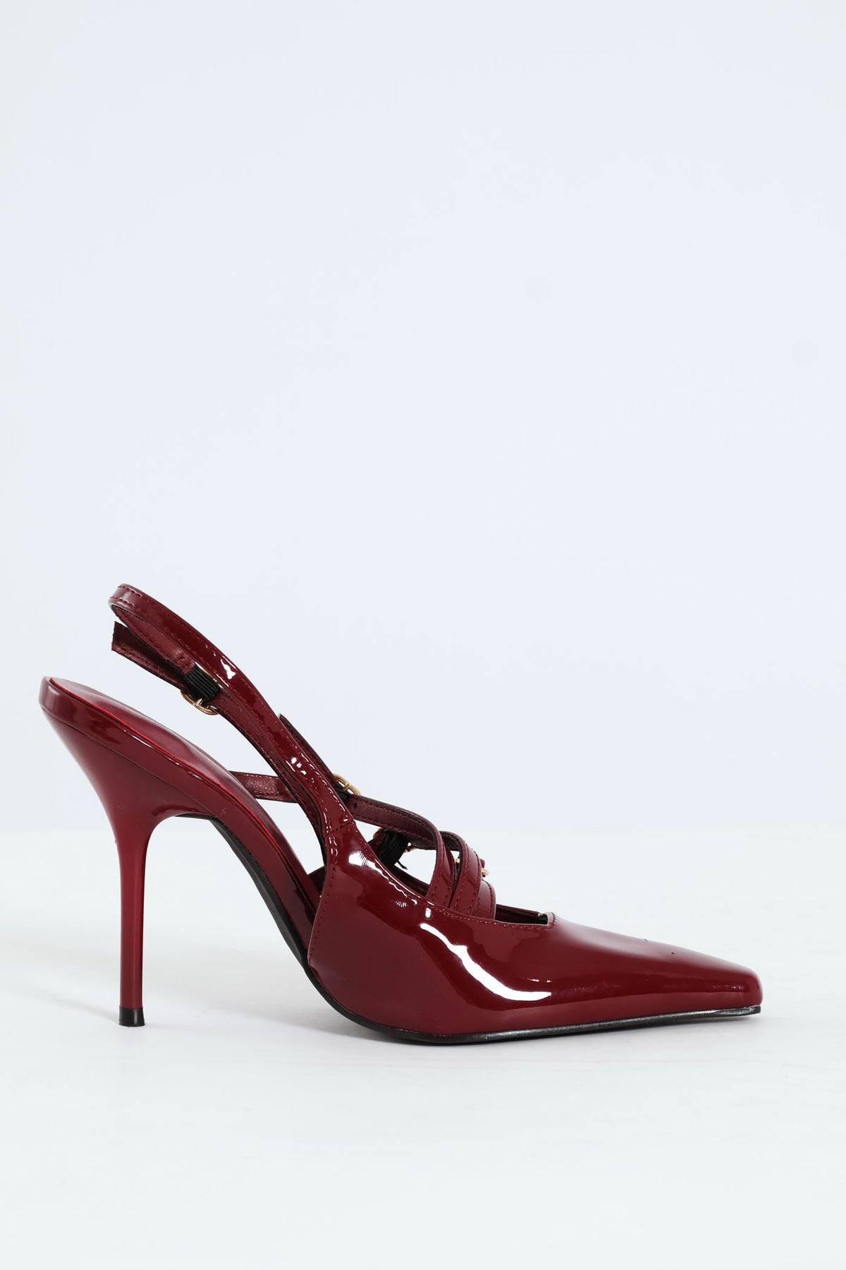 Patent Pointy Buckle Multistrap Slingback Heel - Burgundy