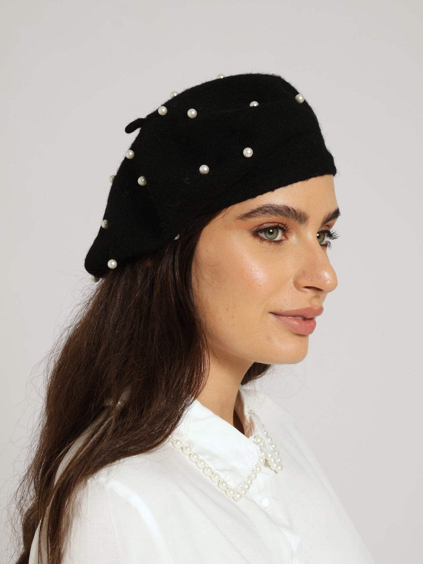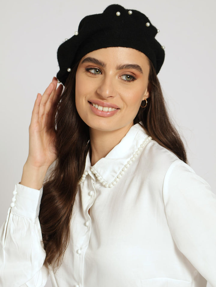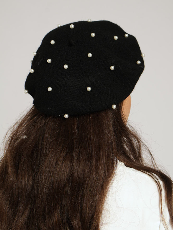 Pearl Bead Beret - Black