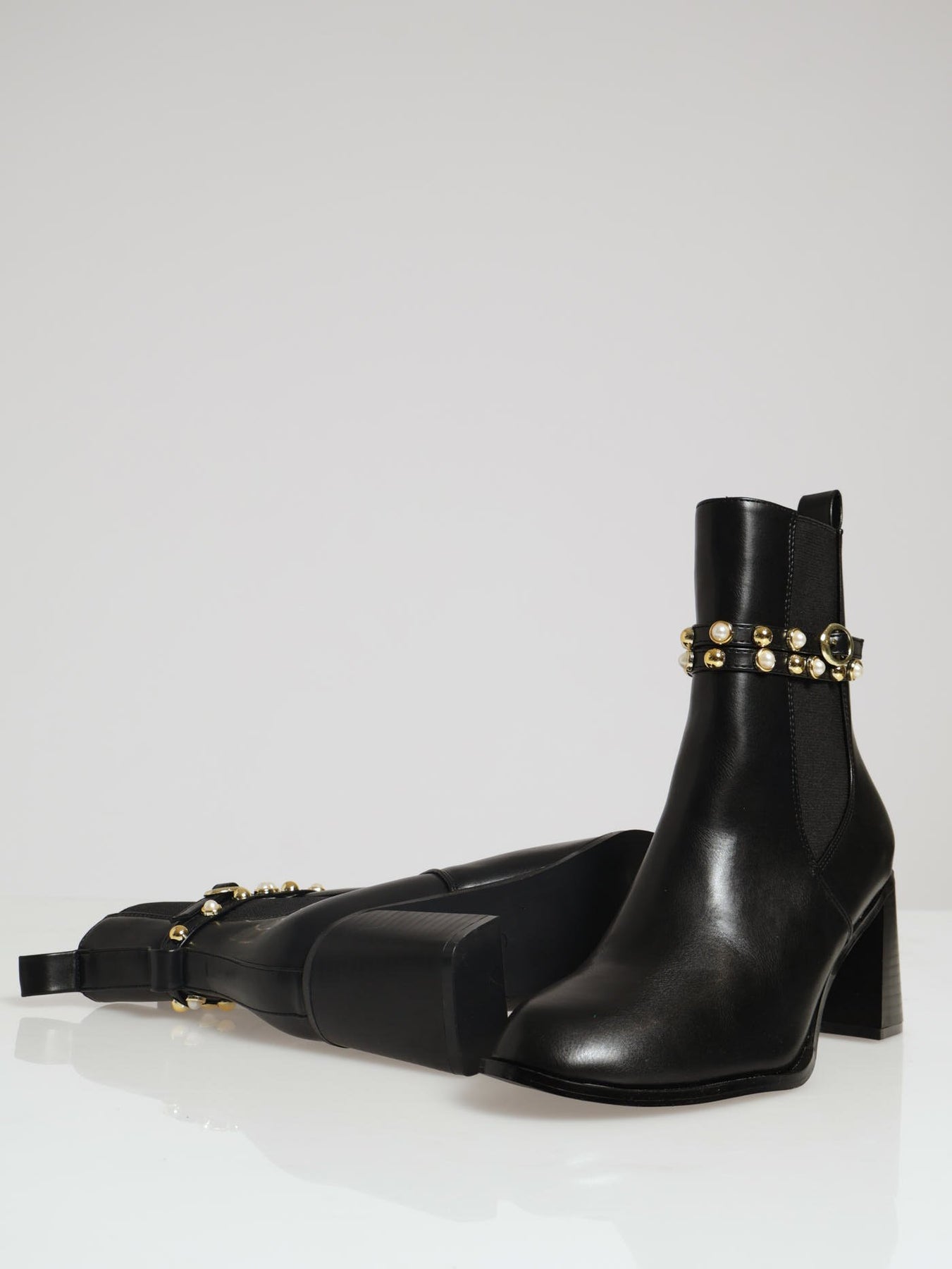 Pearl & Stud Chelase Block Heel - Black