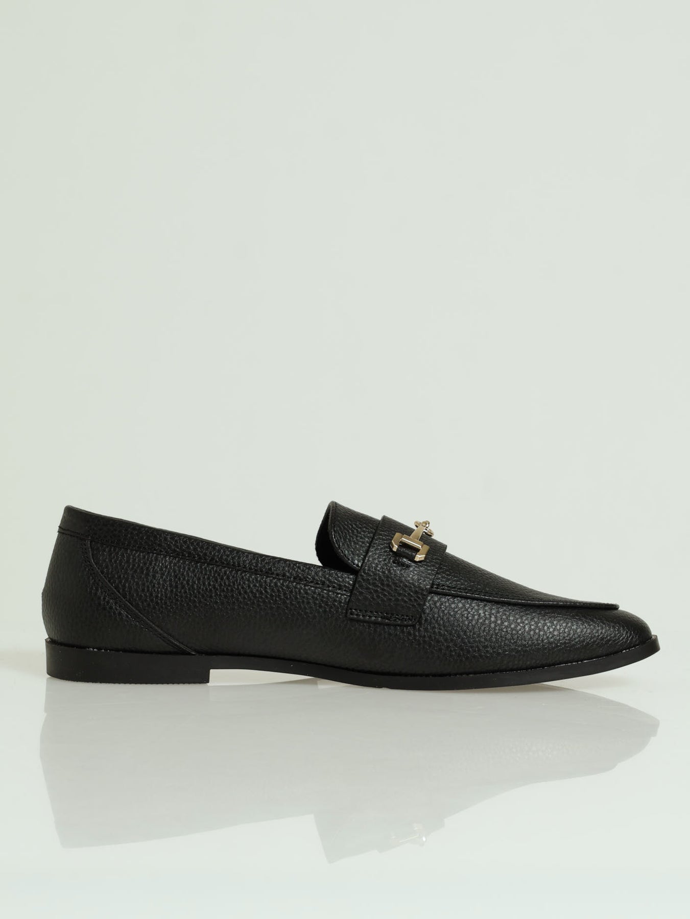 Pebble Grain Loafer With Metal Trim -Black