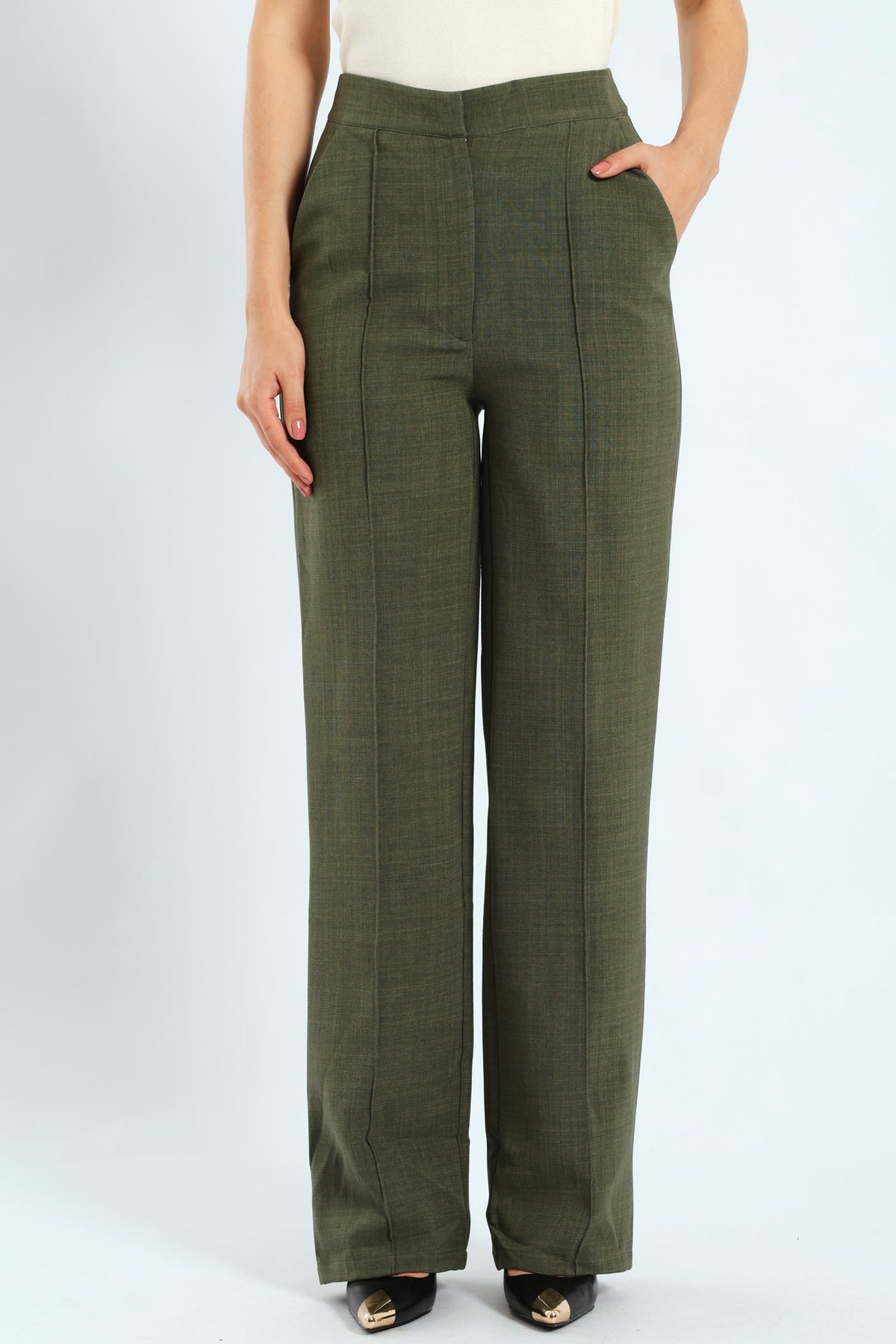 Pin Tuck Linen Blend Straight Leg Pant - Olive