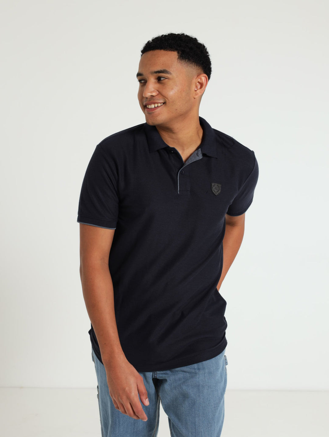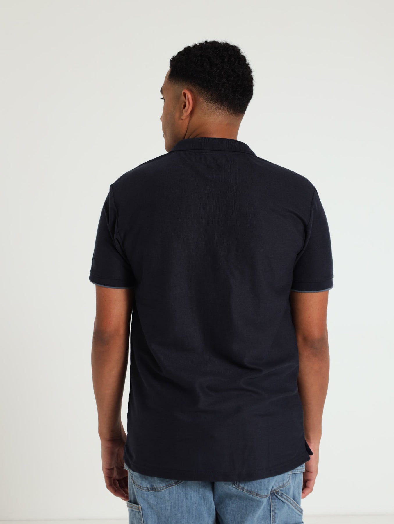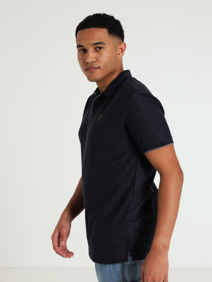 Pique Tipped Collar Golfer - Navy