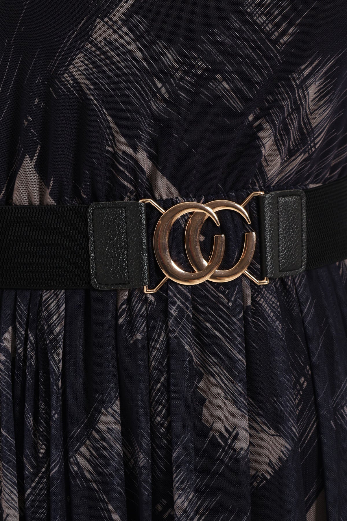 Pleated Belt Mesh Maxi Dress