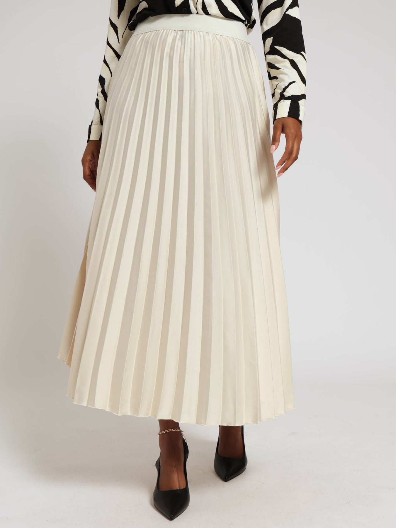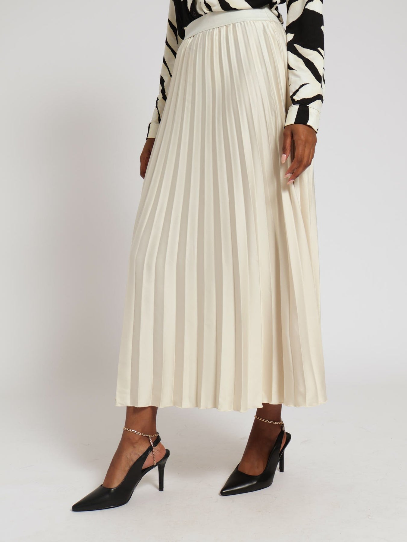 Pleated Satin Maxi Skirt - Champagne