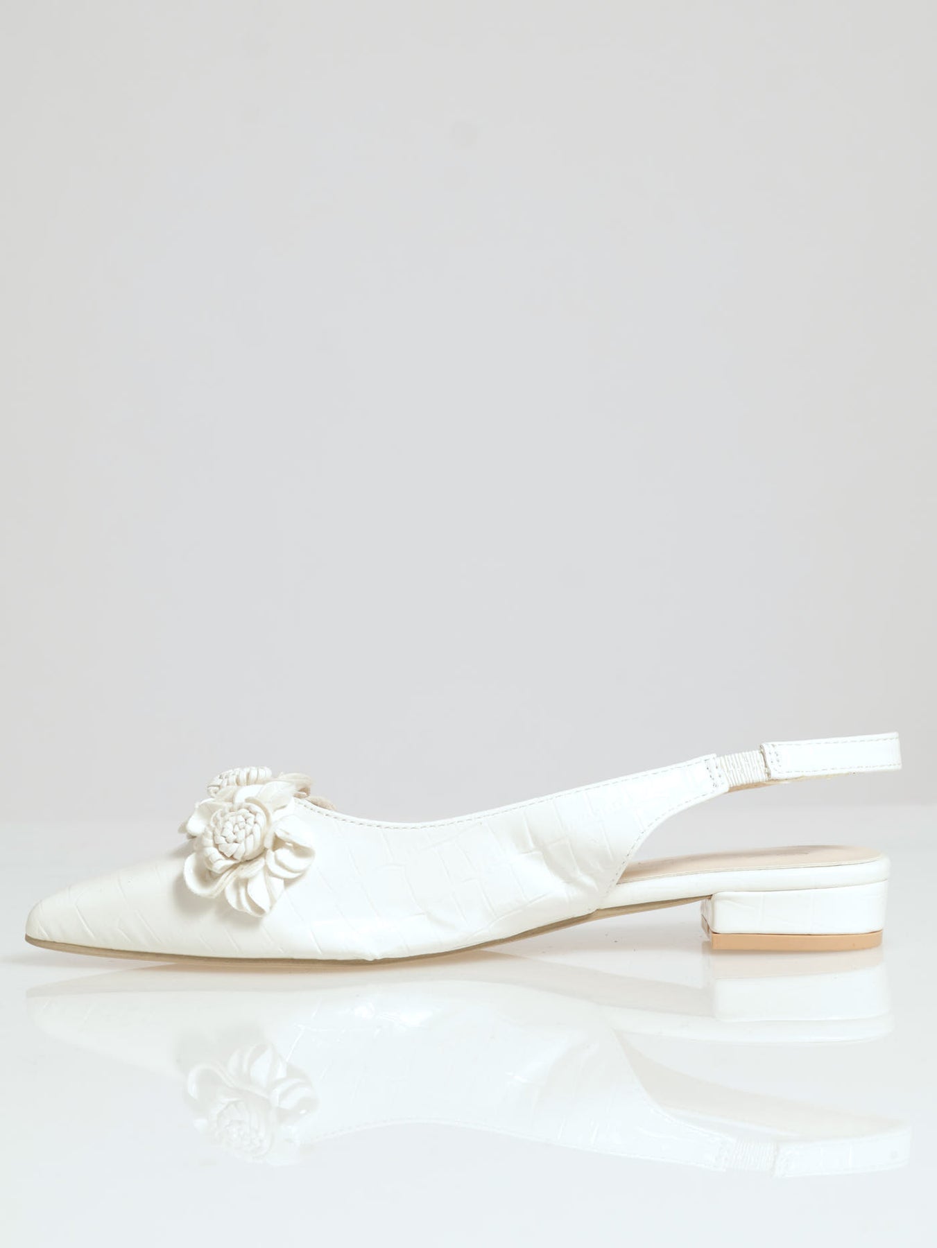 Pointy Croc Sling Back Sandal With Flowers - Off White
