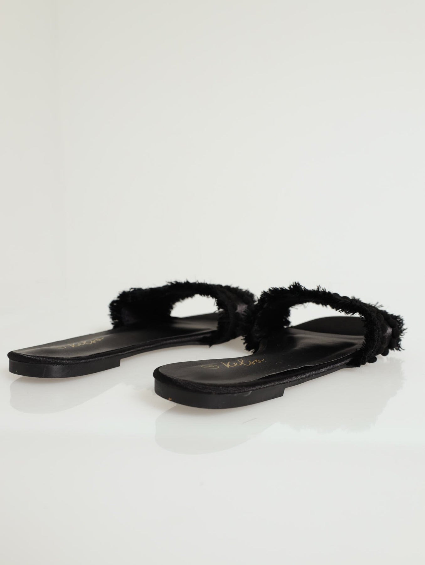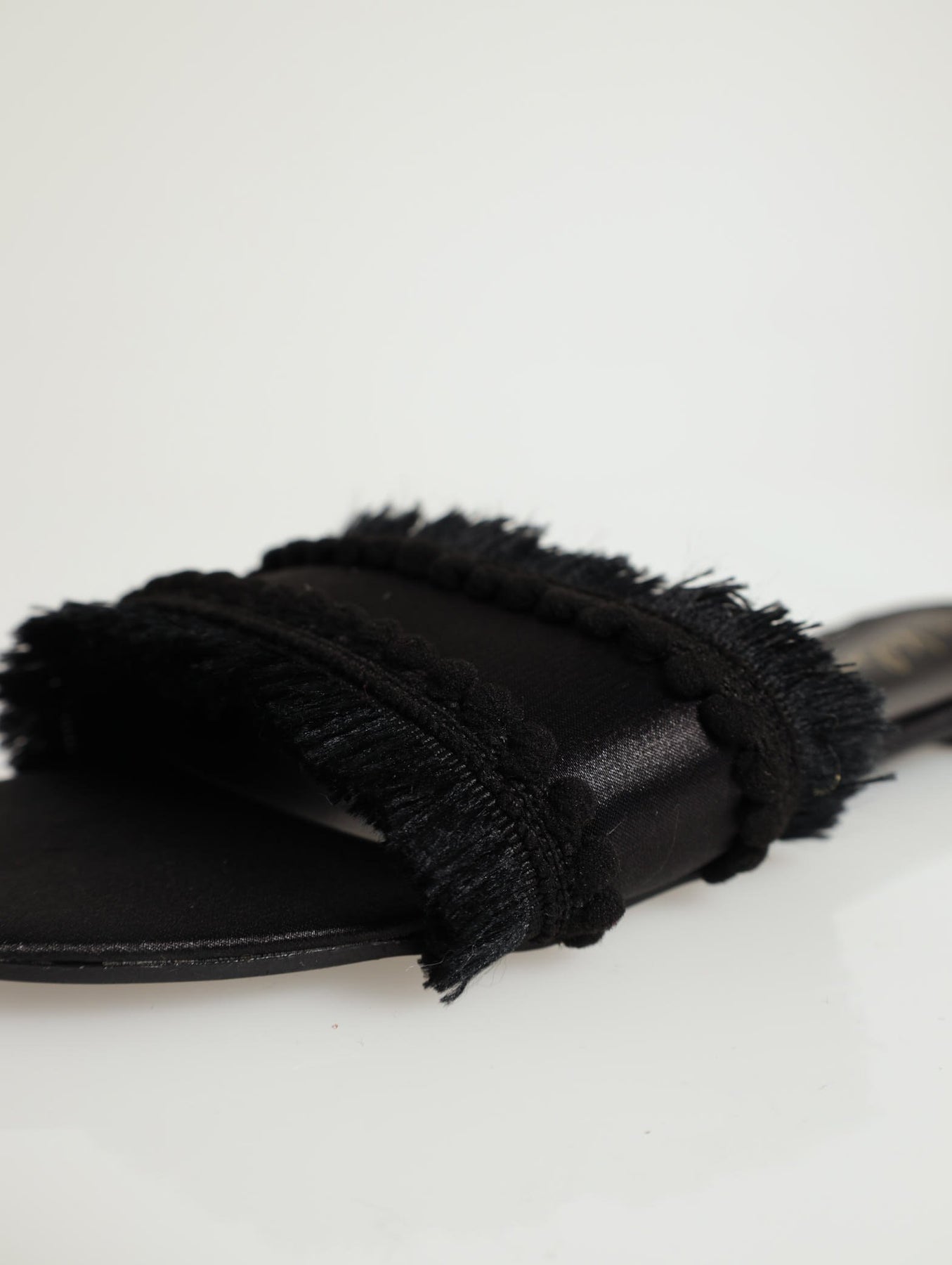 Pom Pom With Fringe Detail Mule Flat Sandal - Black