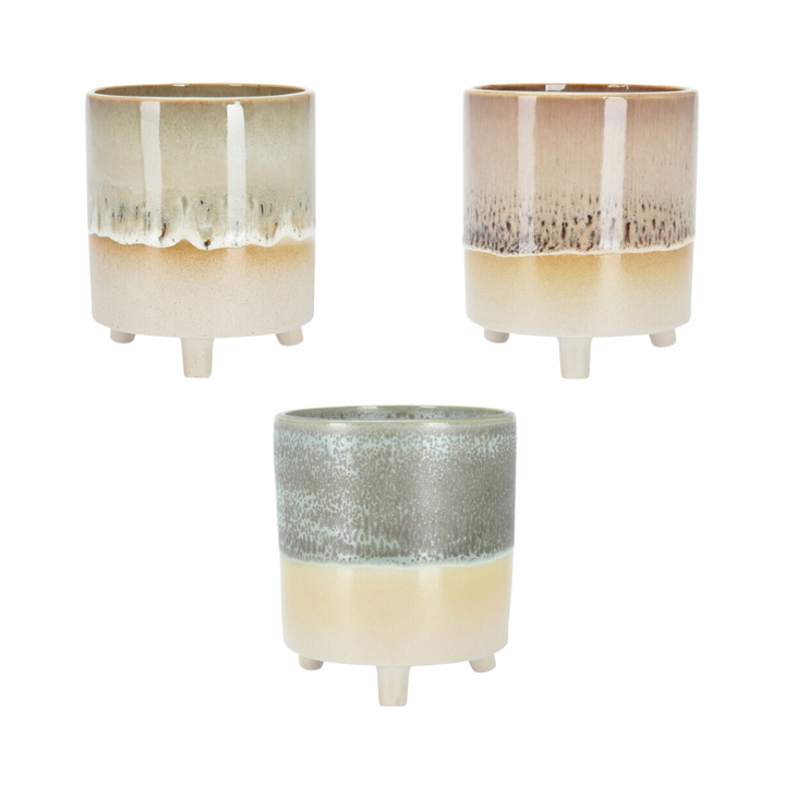 PORCELAIN POT PLANT HOLDER WITH FEET - Sage