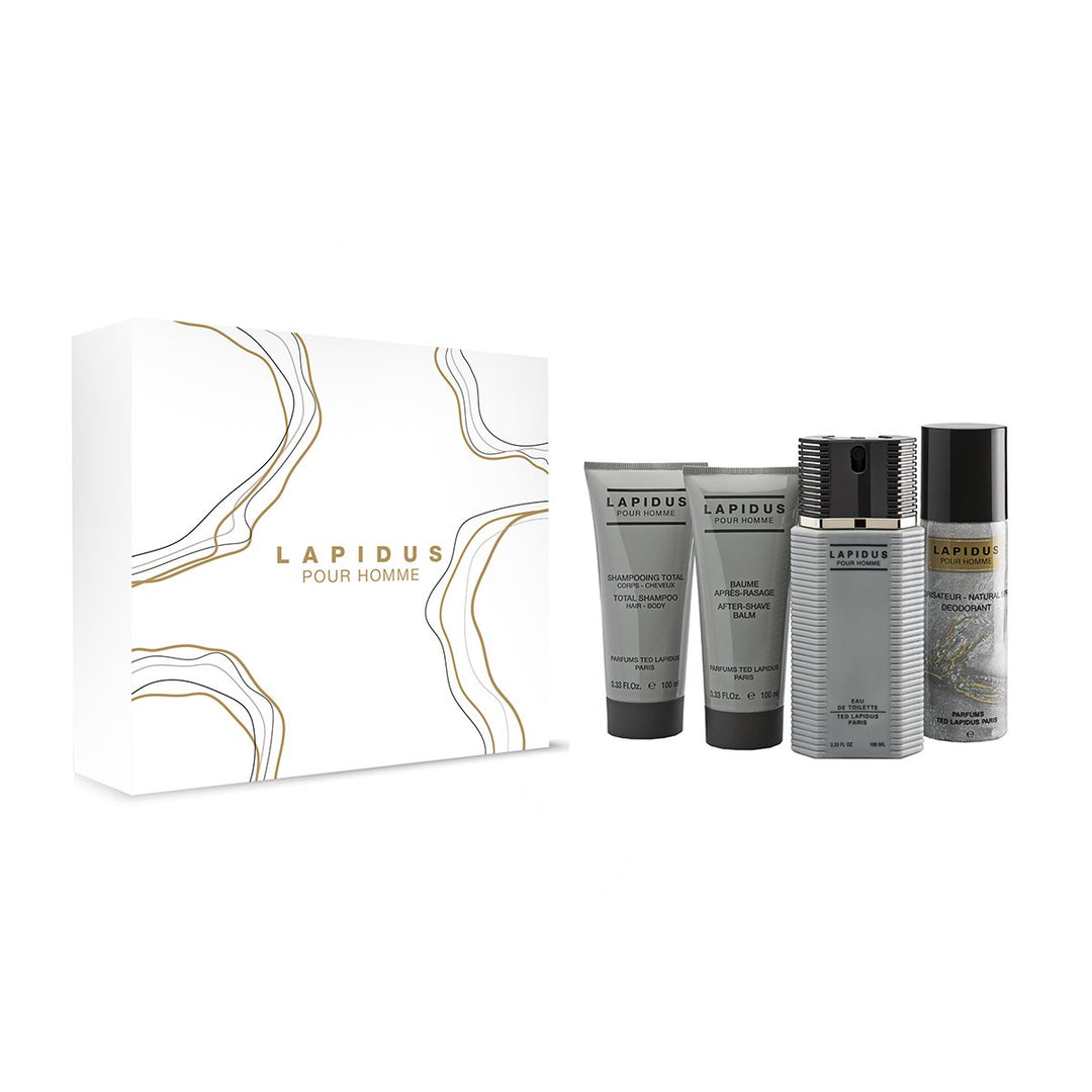 Ted Lapidus Pour Homme 100ml EDT, 200ml Body Spray, 100ml Shower Gel, 100ml After Shave Balm