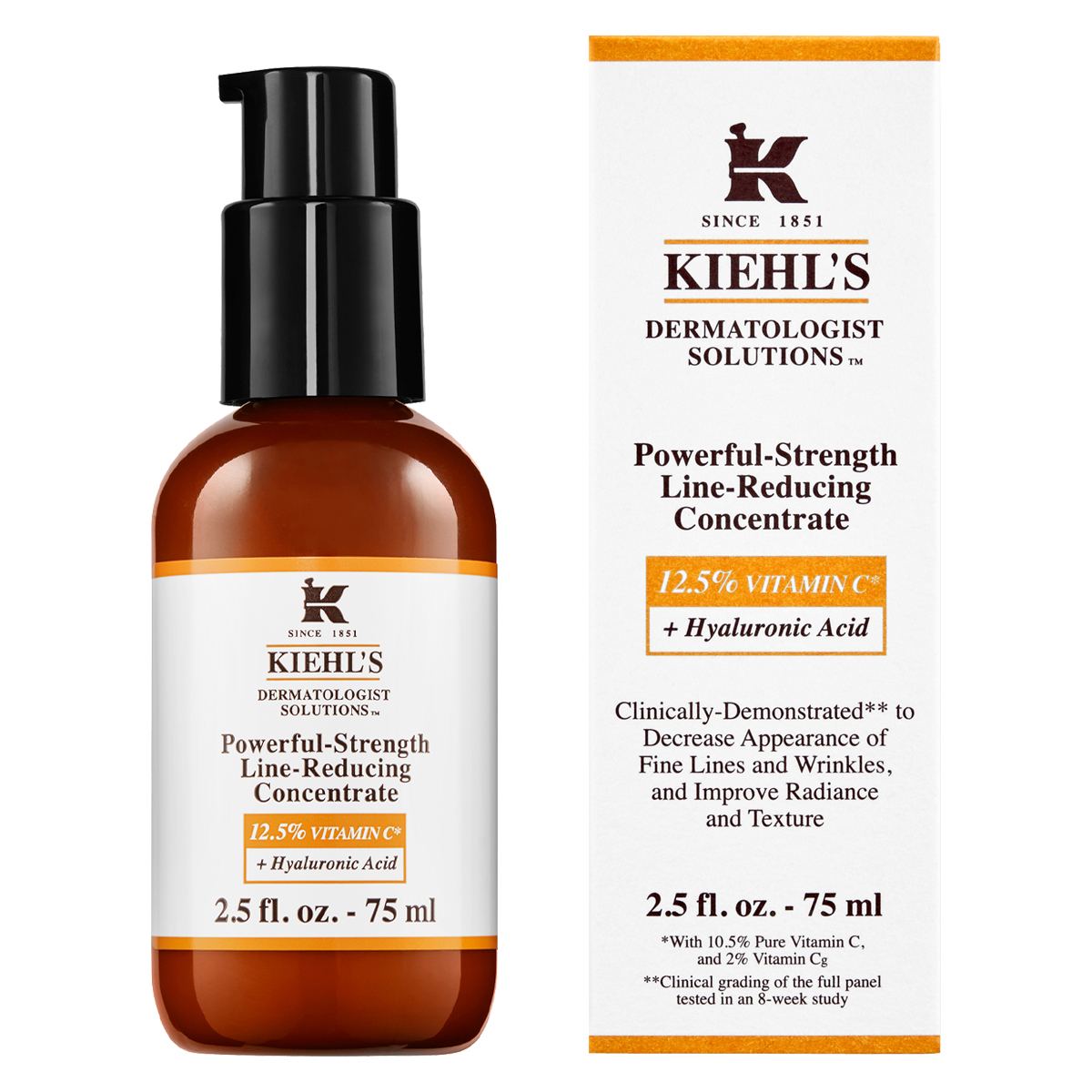 A Vitamin C serum that boosts radiance, helps firm skin and visibly diminishes fine lines, wrinkles and pores for smoother-looking skin. Formulated with 10.5% L-Ascorbic Acid and renewable 2% Ascorbyl Glucoside plus Hyaluronic Acid, this patented, water-free concentrate is a Kiehl’s customer favorite. Paraben-free, alcohol-free, mineral oil-free, and dye-free.