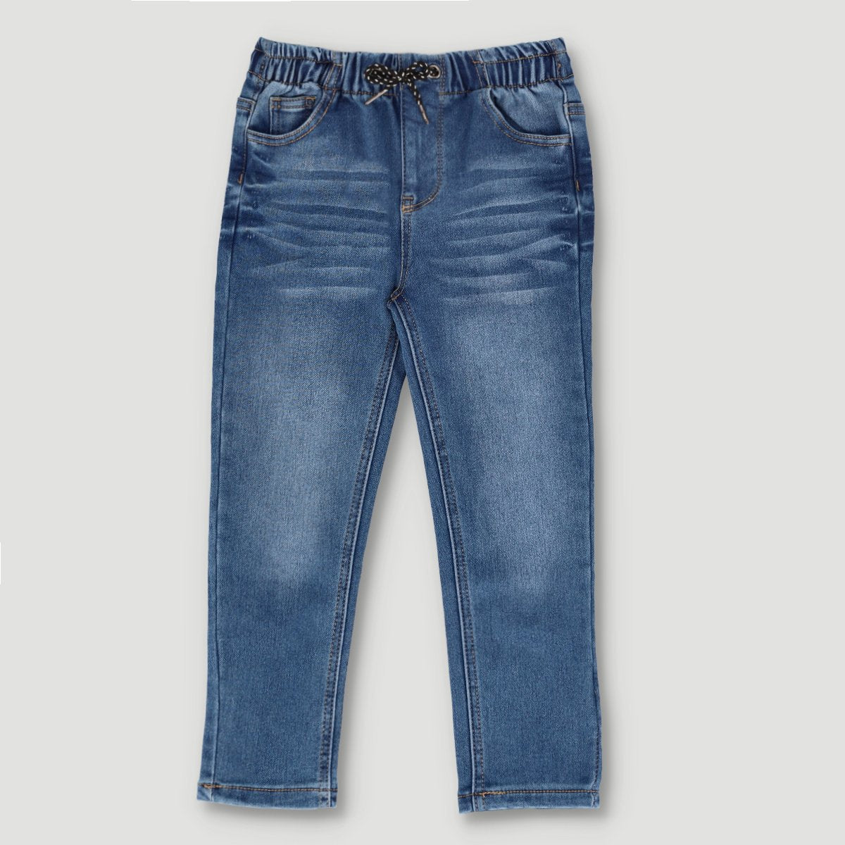 Pre-Boys Fashion Knit Fleece Denim Jean - Mid Blue