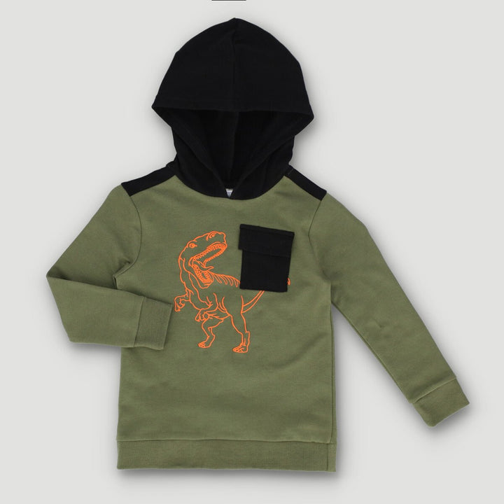 Pre-Boys Long Sleeve Dino Hoody - Olive