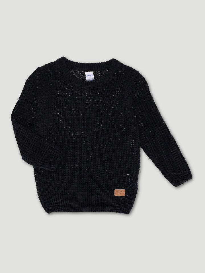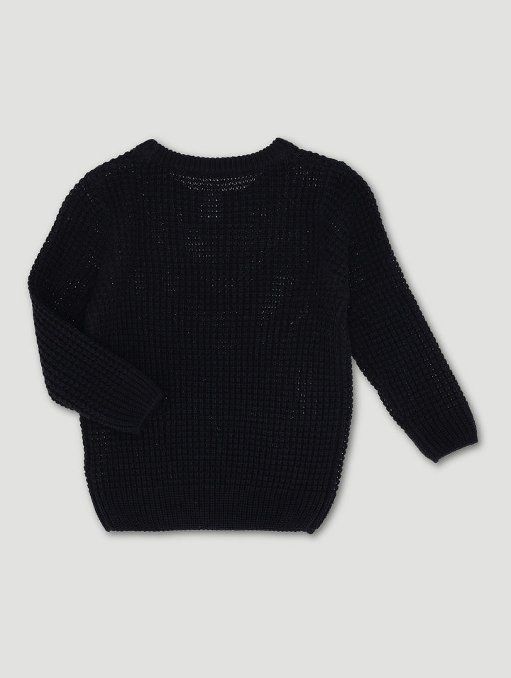 Pre-Boys Waffle Crew Knitwear - Black