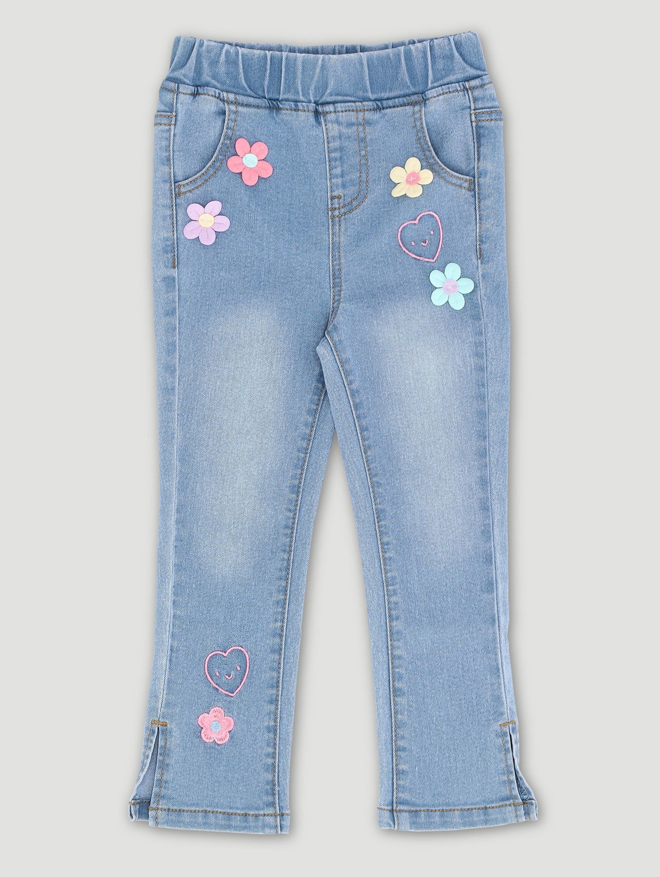 Pre-Girls 3D Flower Denim - Mid Blue
