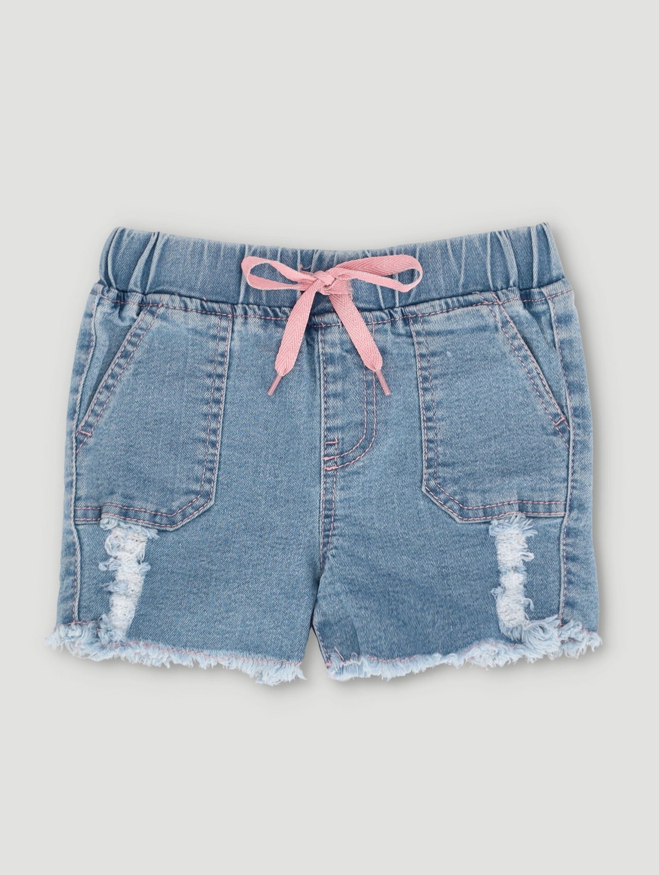 Pre-Girls Fashion Denim Pull On Short With Abrasions - Medium Blue