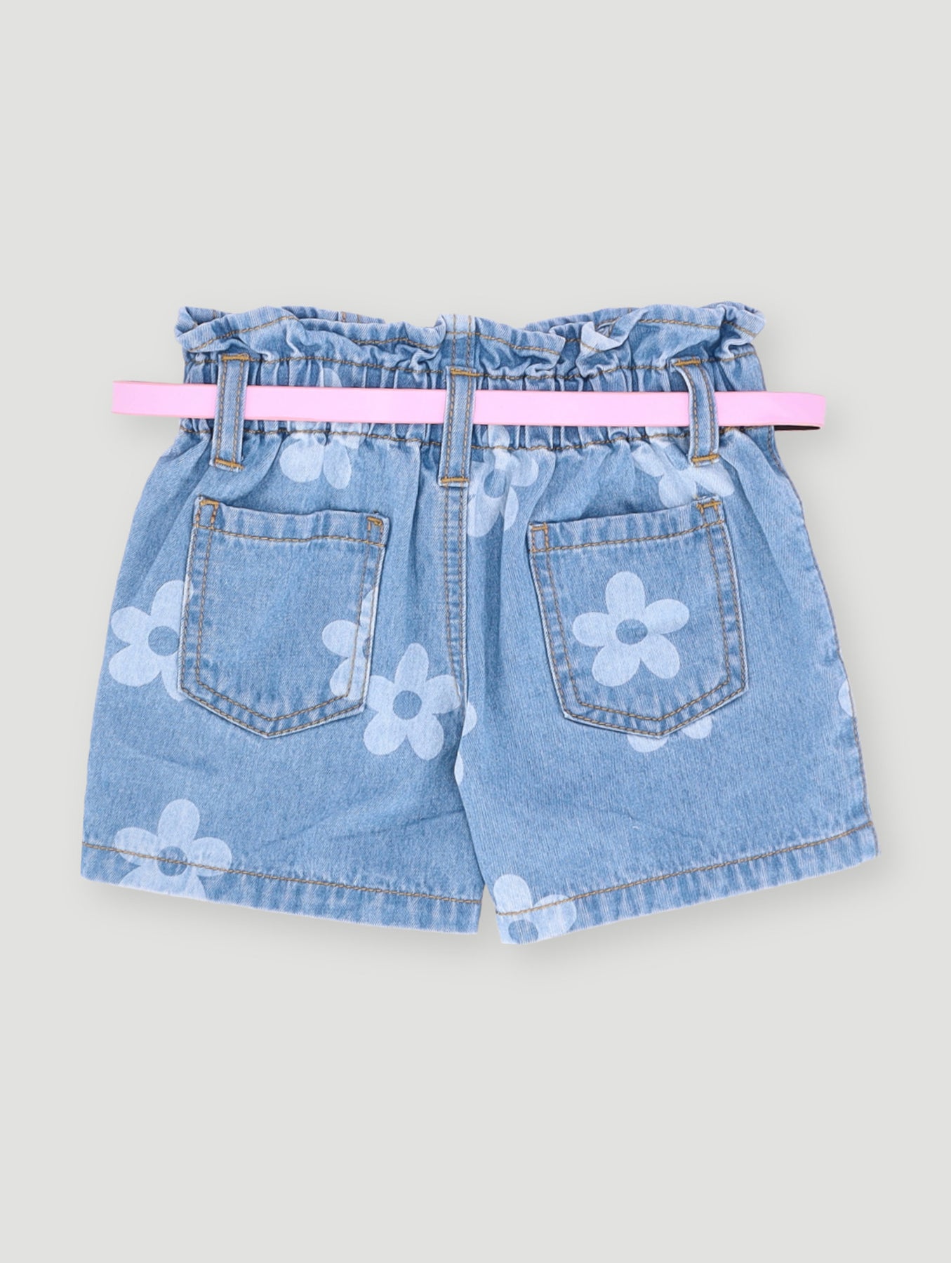 Pre- Girls Floral Printed Paperbag Shorts - Light Wash