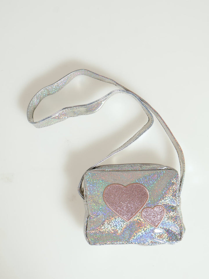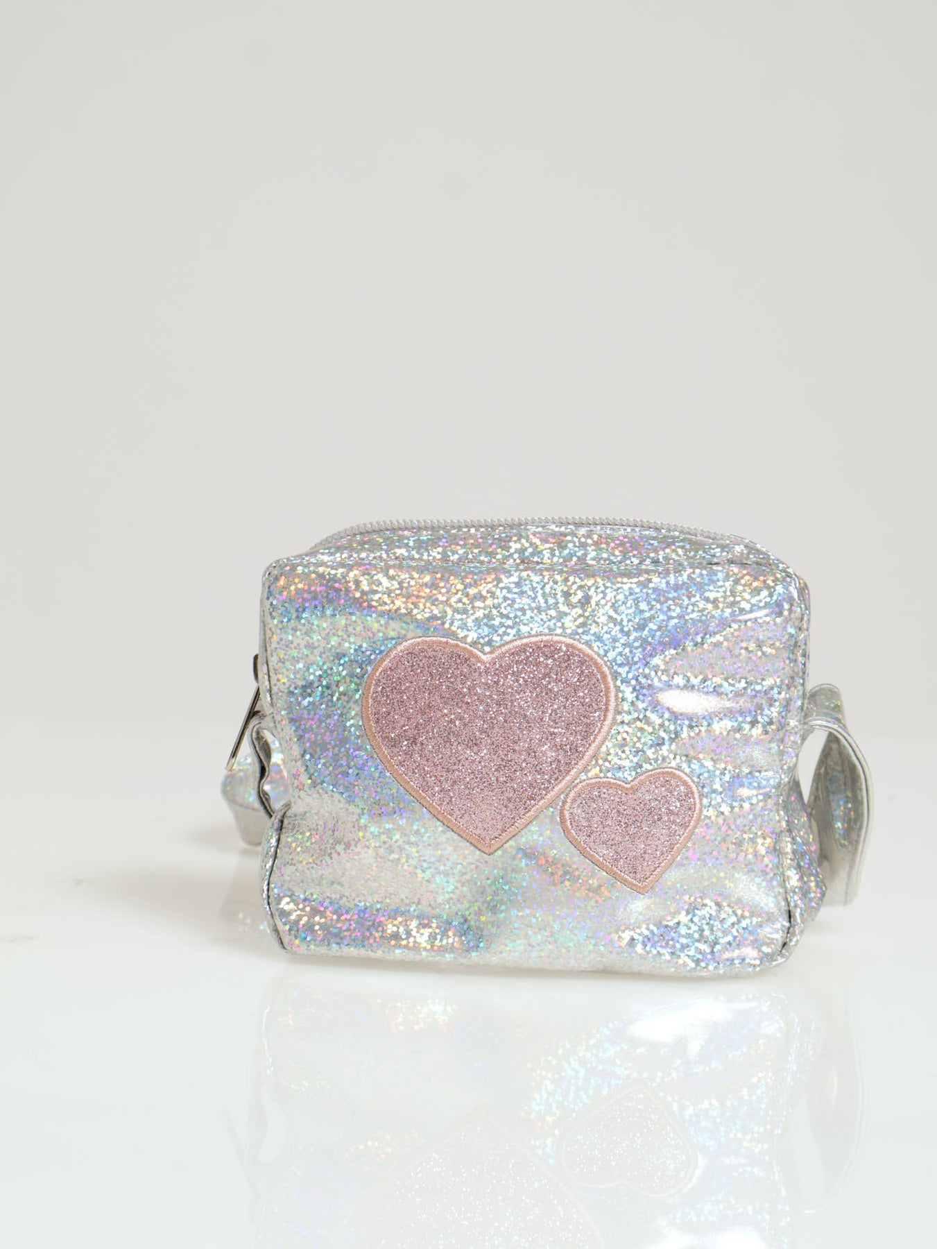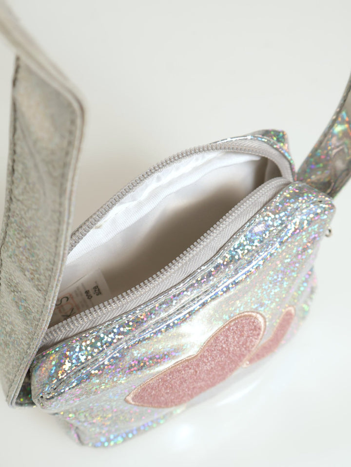 Pre-Girls Glitter Heart Sling Bag - Silver