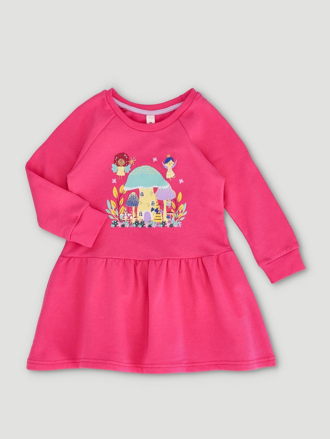 Pre-Girls Long Sleeve Fleece Dress - Cerise