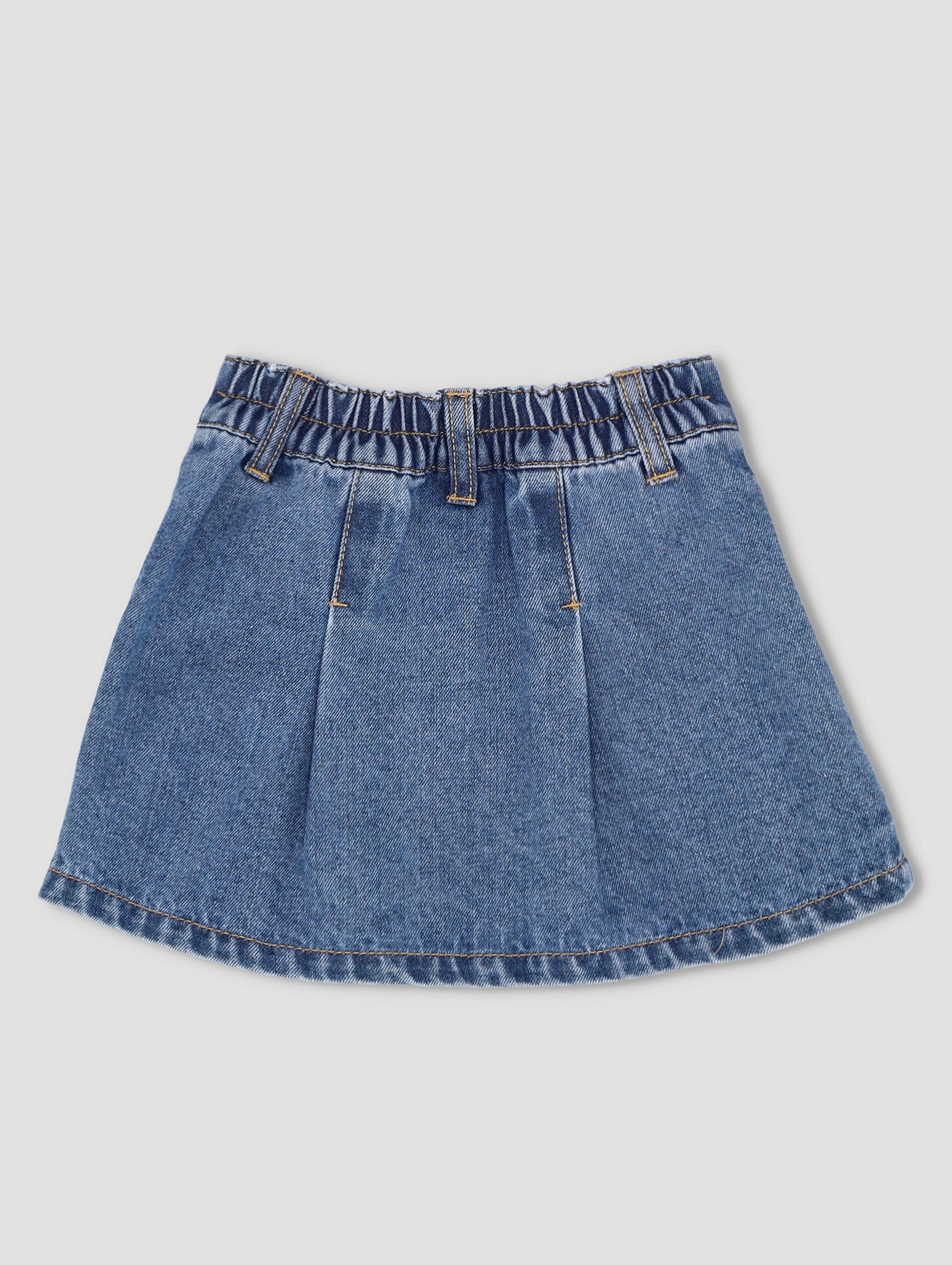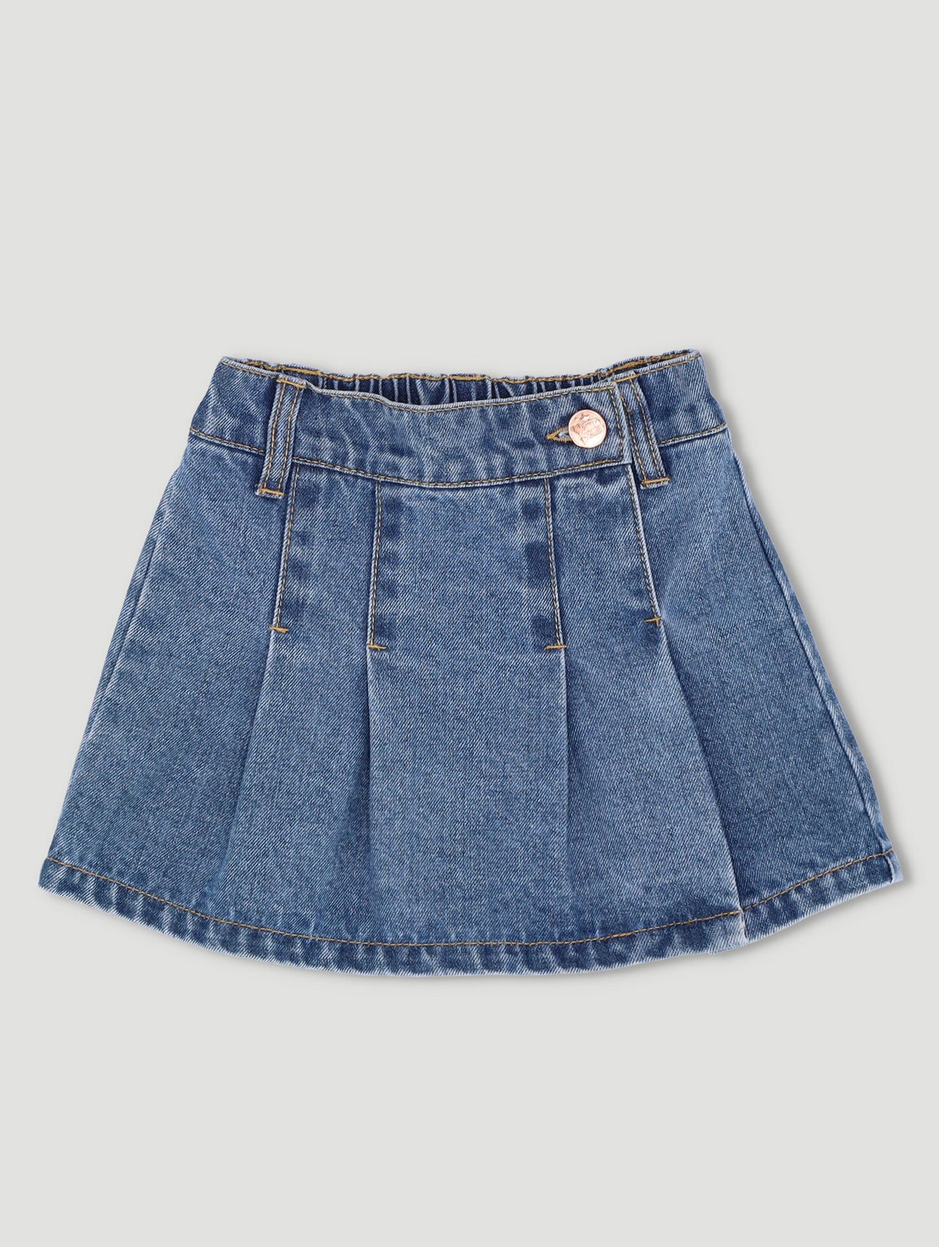 Pre-Girls Pleated Denim Skirt - Mid Blue