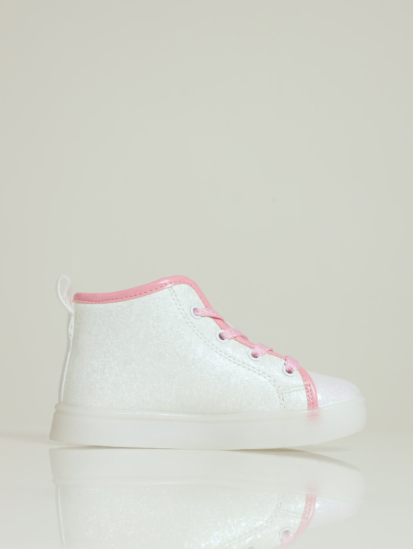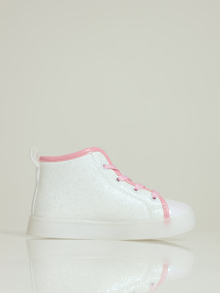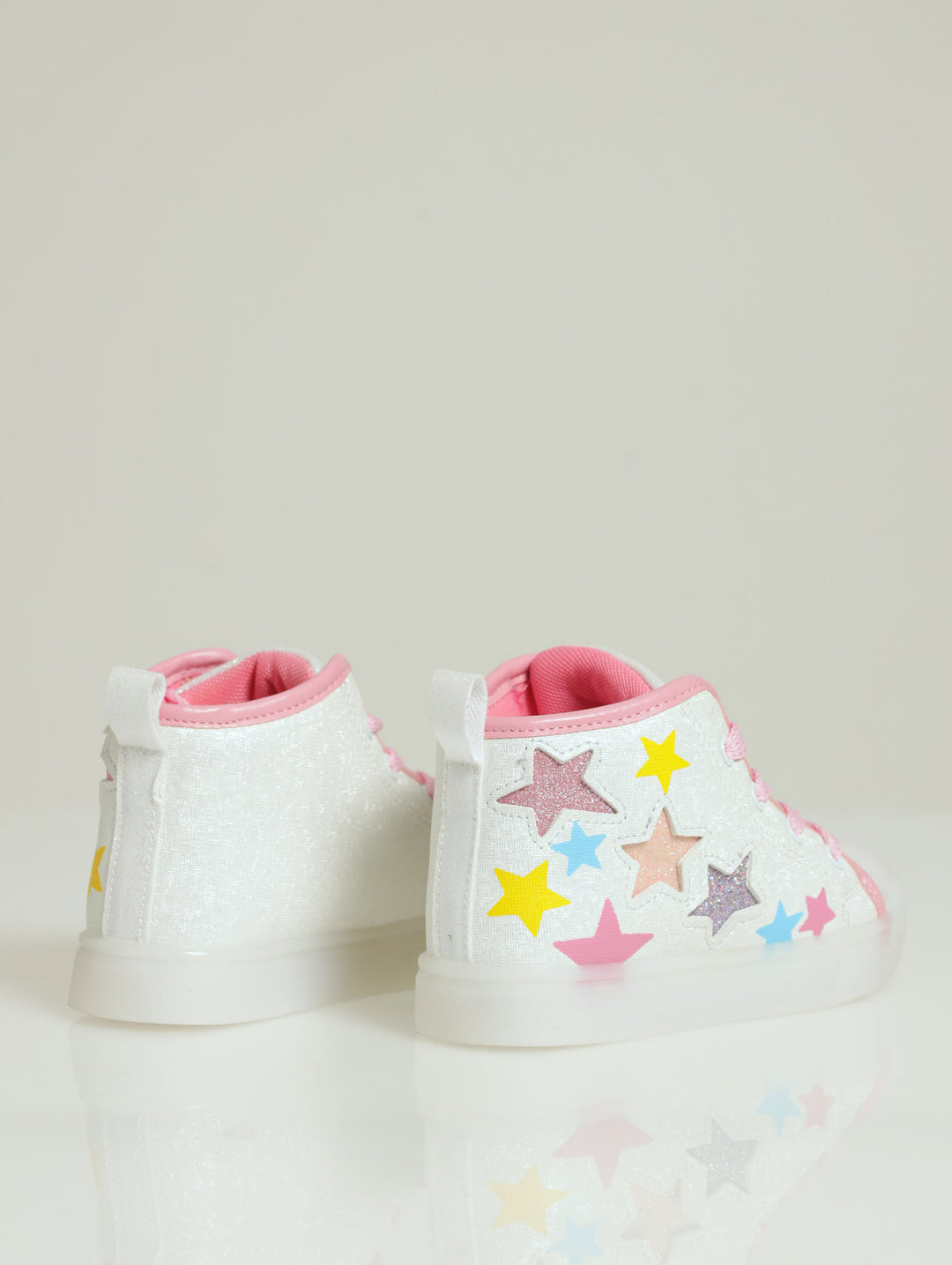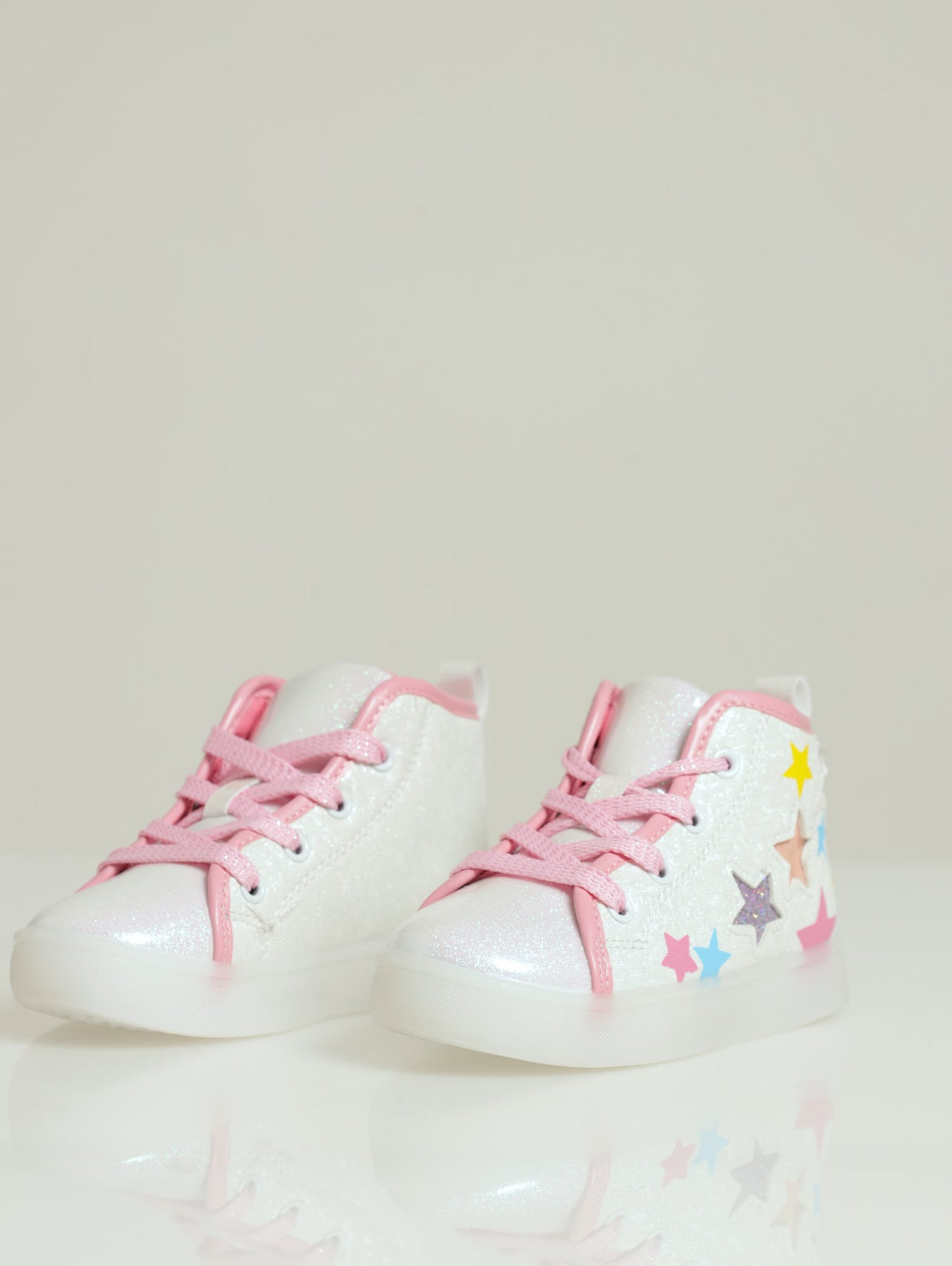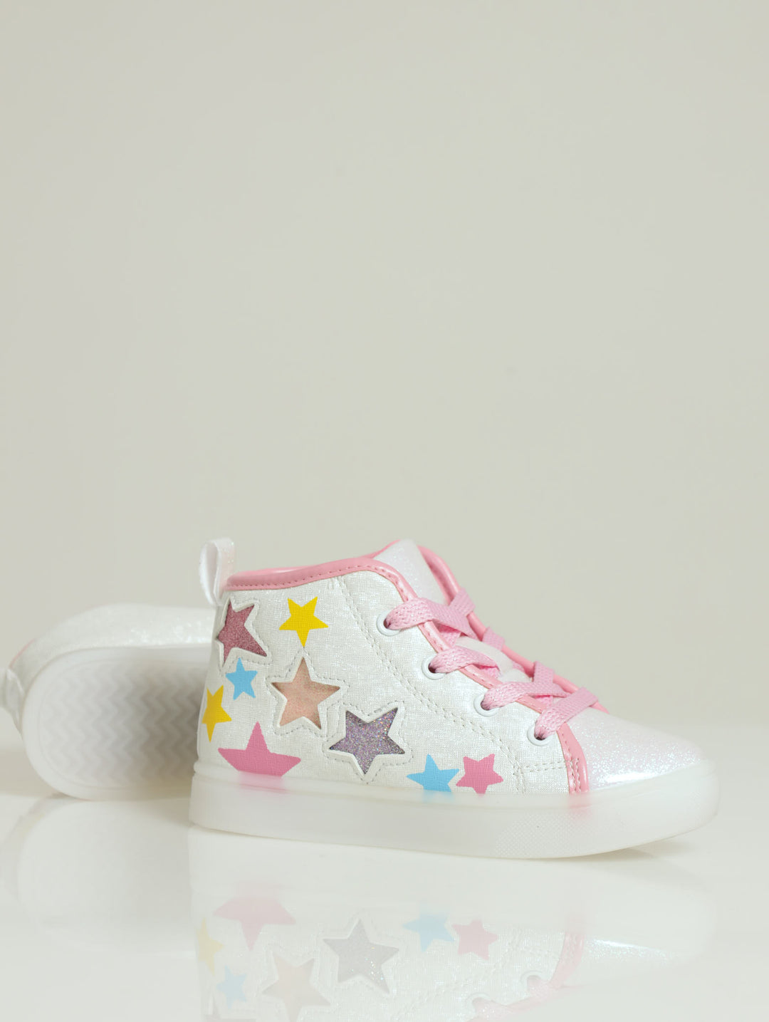 Introducing the Pre-Girls Star Light Up Hi-Top Sneaker in White. These sneakers feature a classic design and are perfect for any active girl. The durable construction ensures long-lasting wear, while the light-up feature adds a fun touch. Step up your sneaker game with these stylish and functional sneakers.