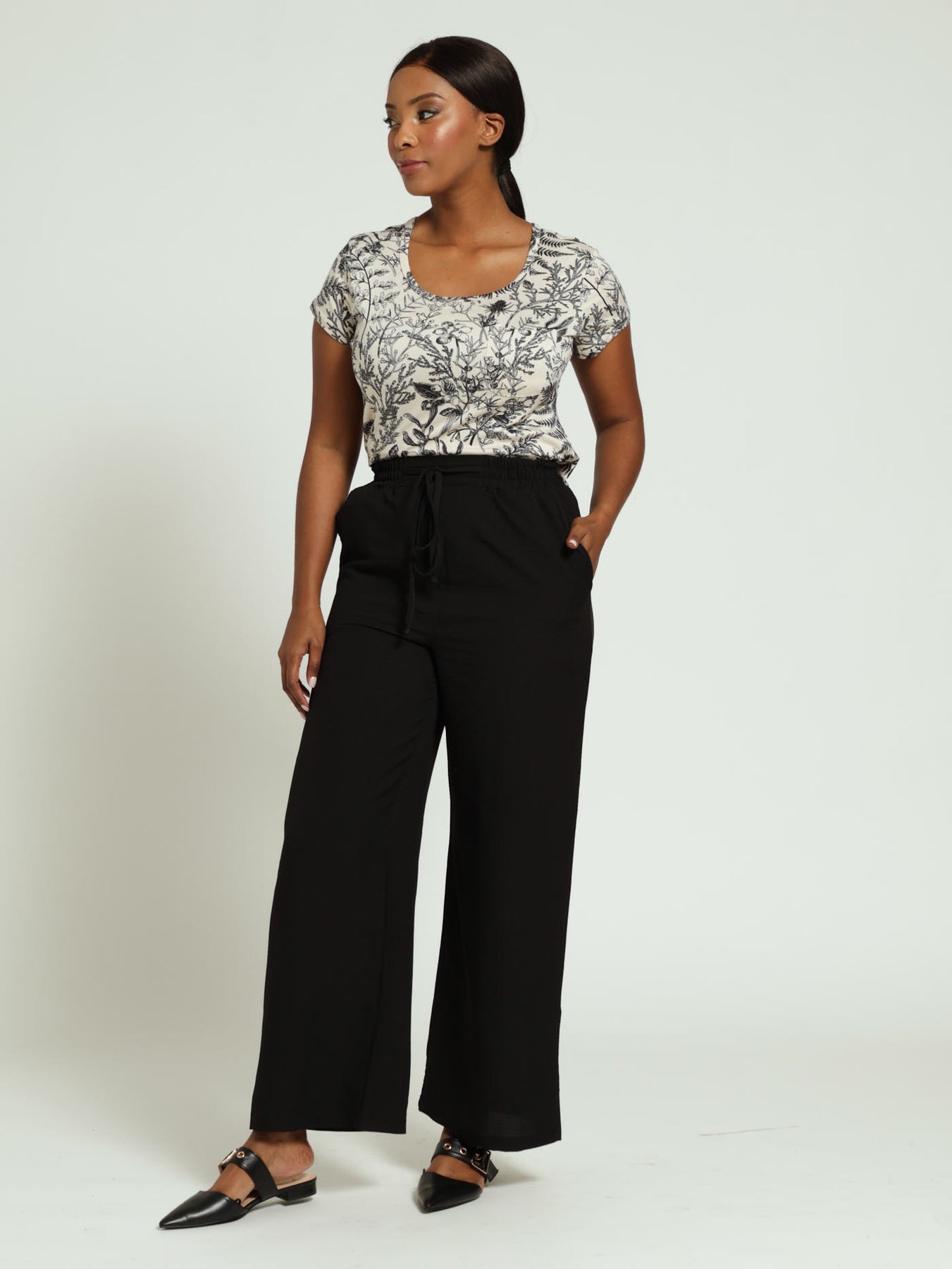 Pull-On Wideleg Capri Pants With Tie - Black