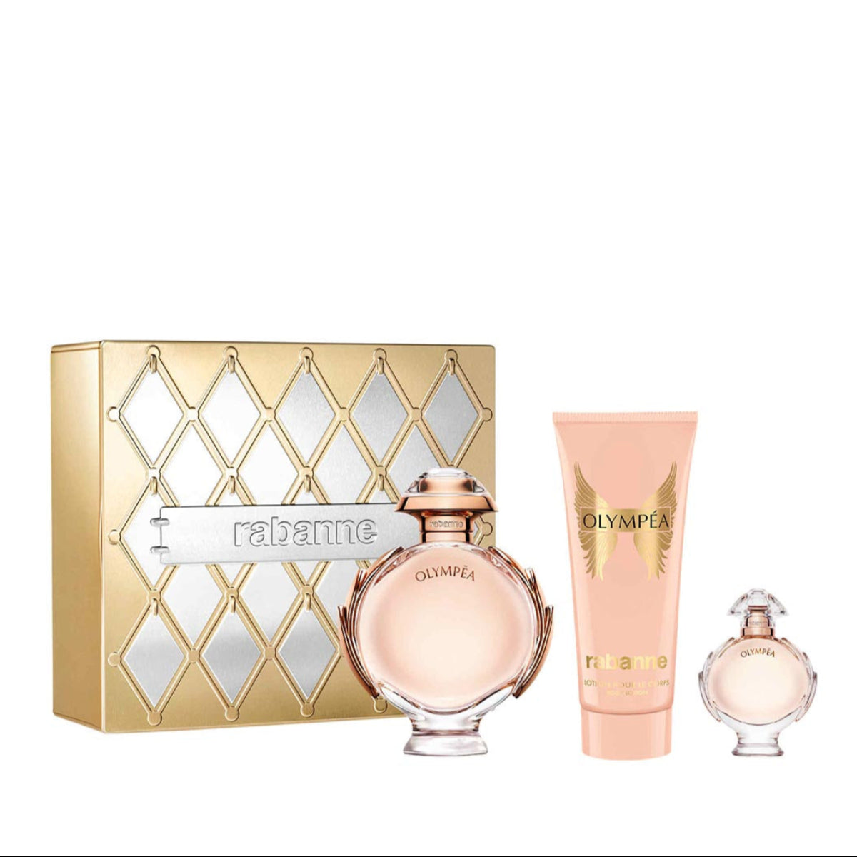 in an ultra-couture pattern metal set inspired by Rabanne's fashion. OLYMPEA Eau de Parfum gives back power to women. Notes of salty vanilla, green tangerine, water jasmine and ginger flower.