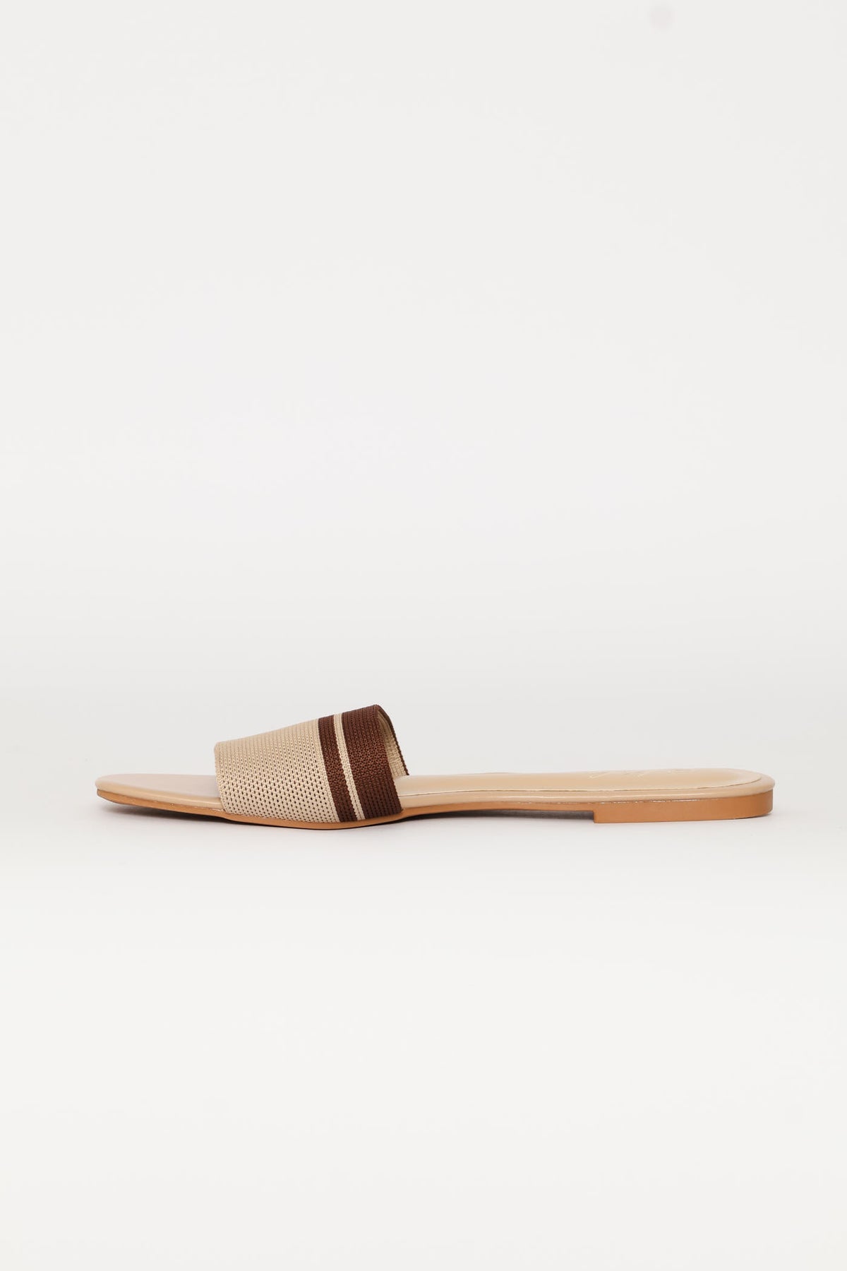 Ribbed Single Band Mule Sandal - Brown/Beige