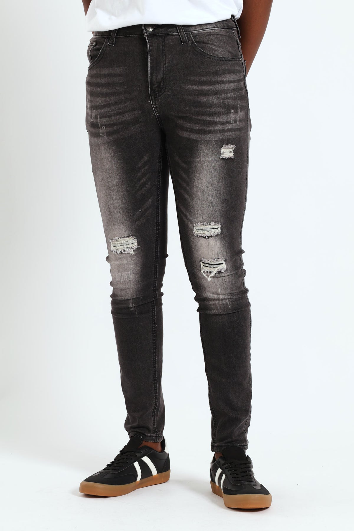 Rip & Repair Knee Skinny Denim - Black