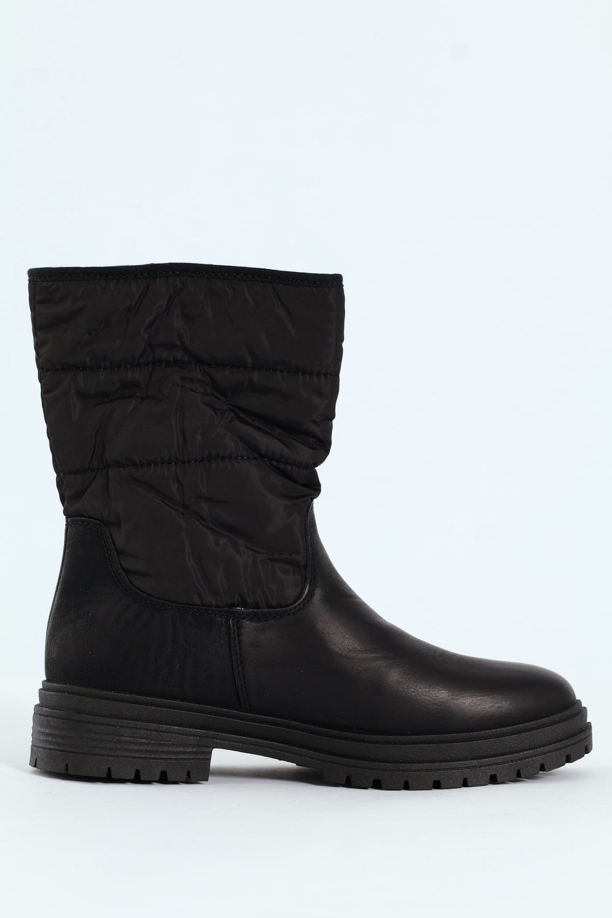 Rochelle Panelled Nylon & Pu Mid Calf  Boot - Black