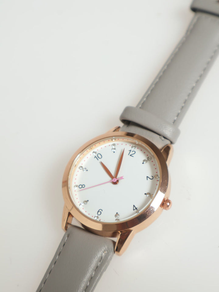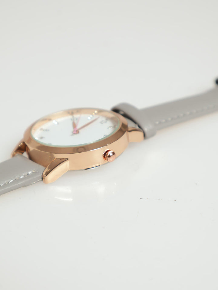 Round Face Watch With Grey Strap - Gold