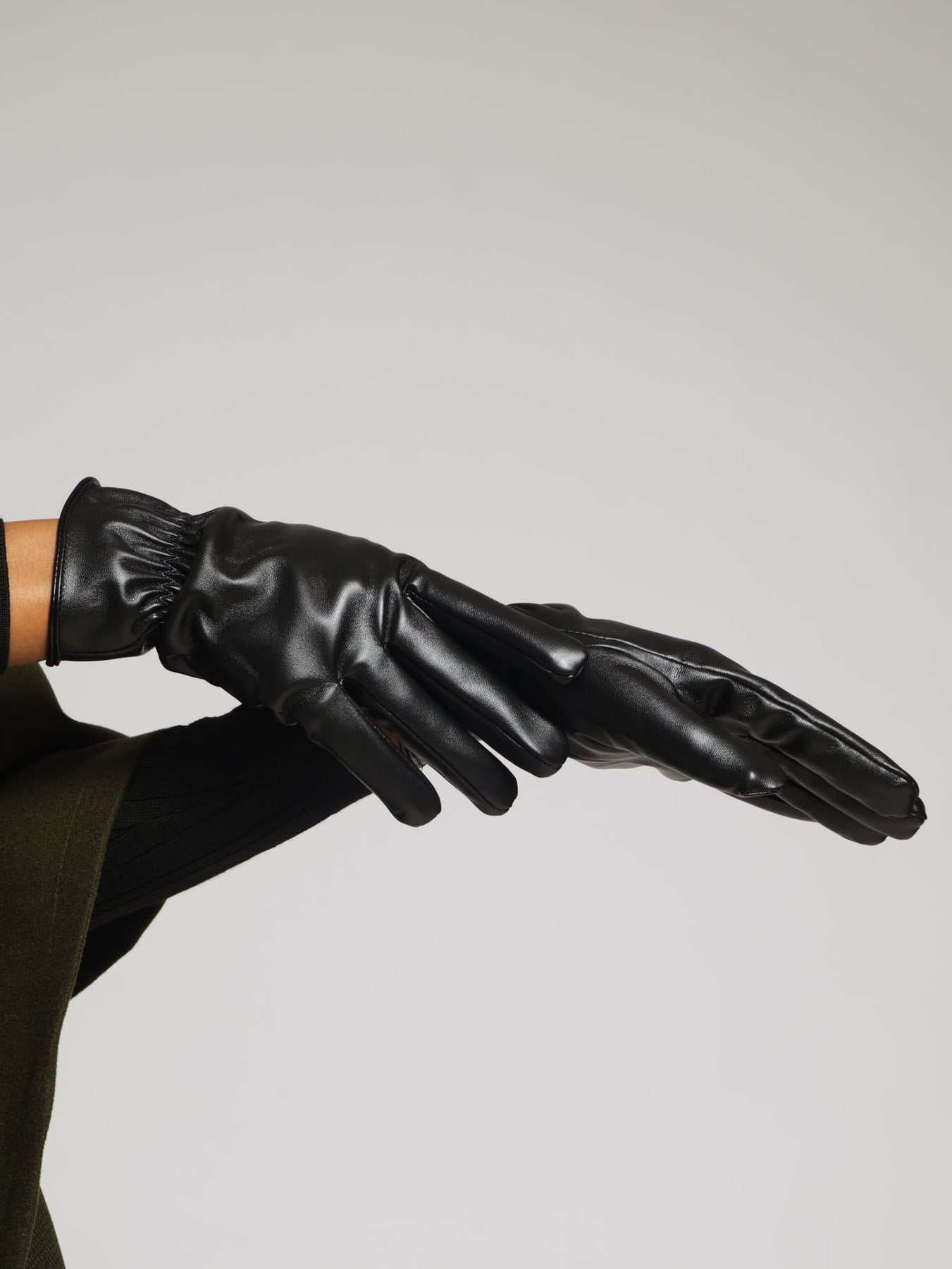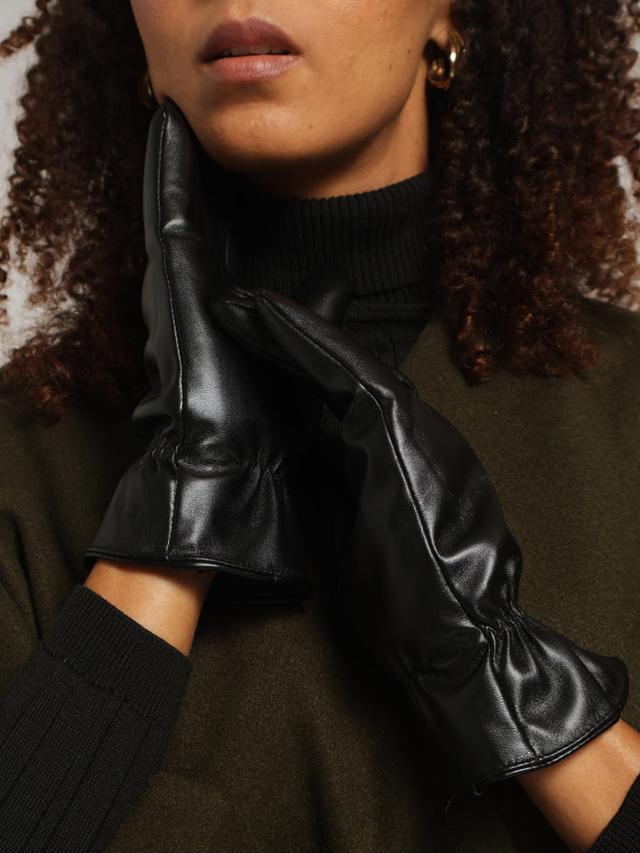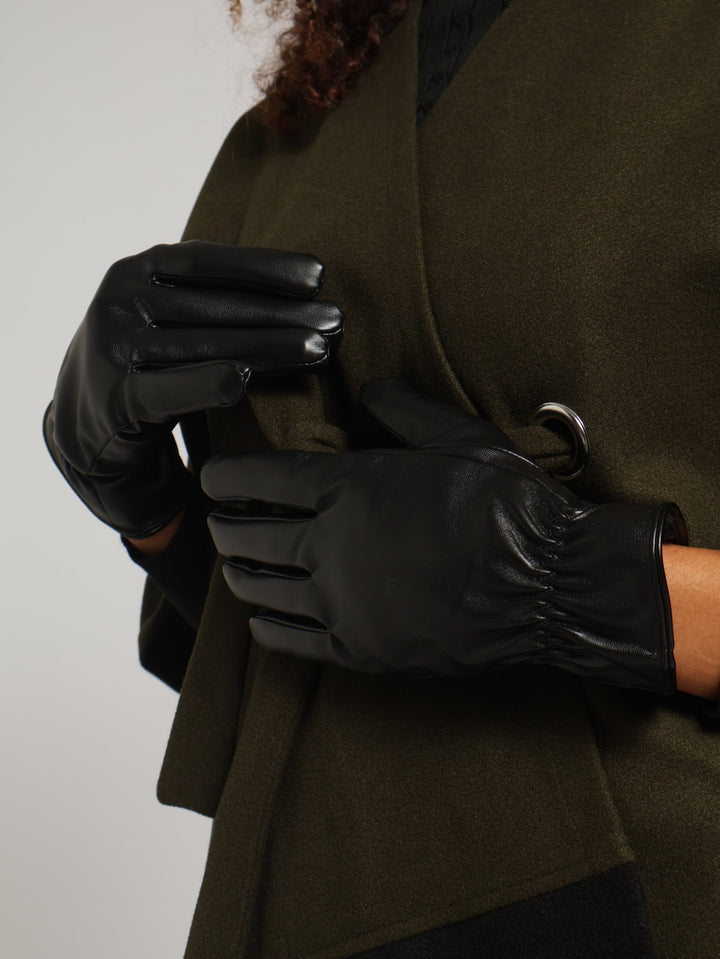Ruched Pu Gloves - Black