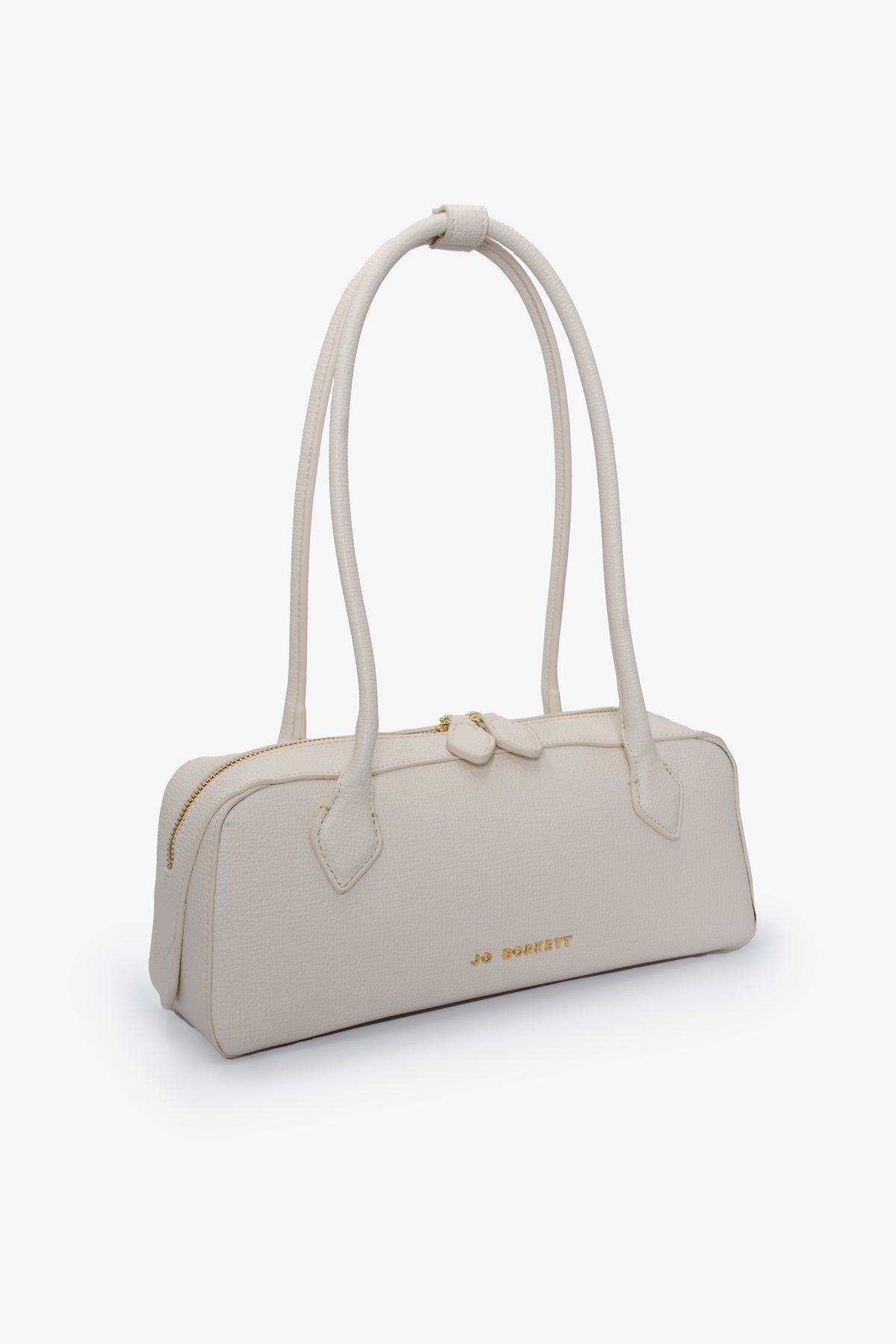 Introducing the Samantha, a modern spin on the classic east-west baguette shape. With elongated proportions and luxurious diamond-shaped strap details, this 'it' bag for 2025 exudes chic minimalism. Complete with a double zip closure and elegant gold hardware.