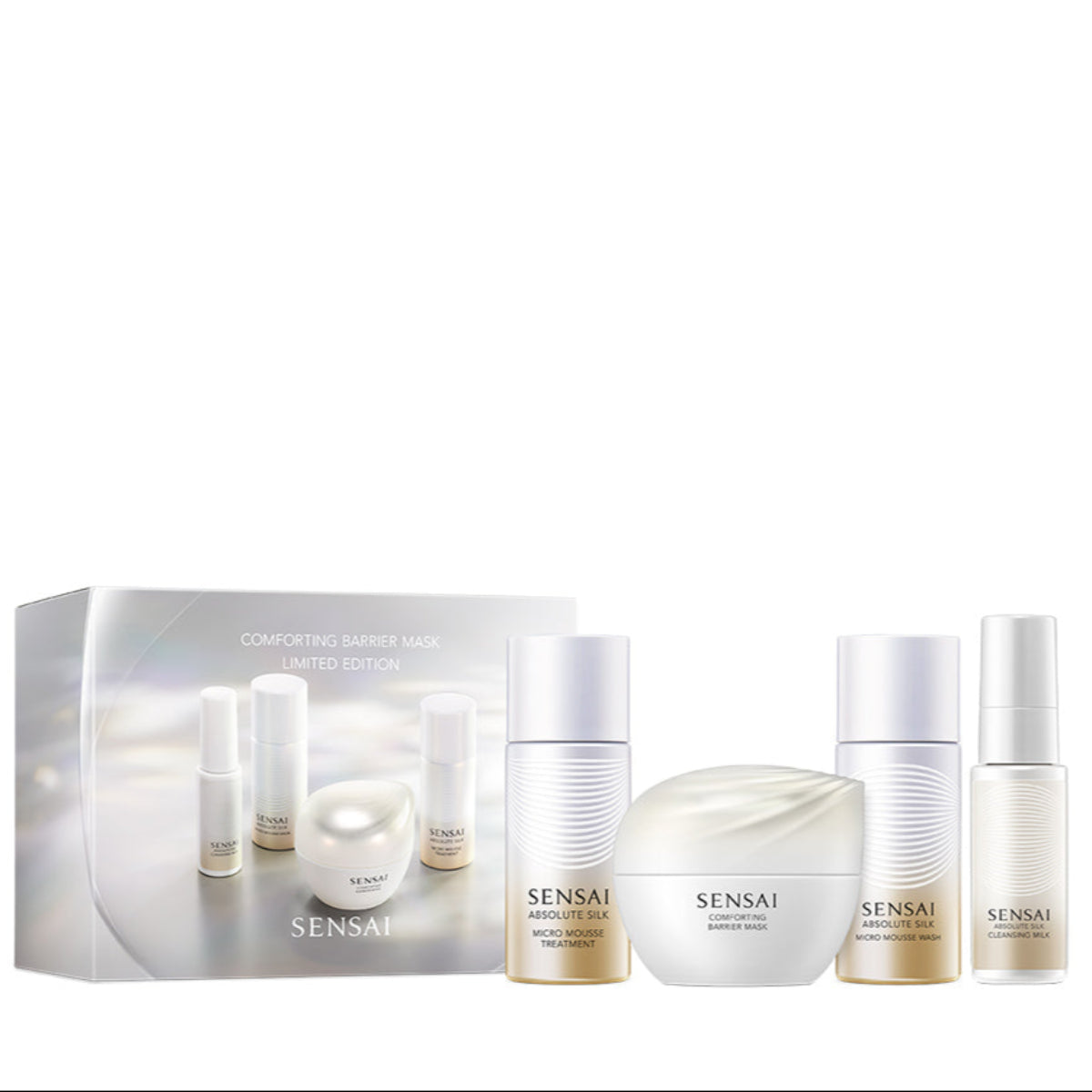 The Sensai Comforting Barrier Mask Set is the perfect Limited Edition set for those who want a protective and soothing cream mask that hydrates, reduces redness and has a smoothing effect - while strengthening the skin barrier for increased protection. In this set you also get two cleansers and a moisturizer from the Absolute Silk range in addition to the Comforting Barrier Mask, so you can perform Sensai's iconic Saho ritual - for perfectly cleansed, optimally hydrated and perfected skin. Enjoy effective products, luxurious textures, soothing scents and amazing results.