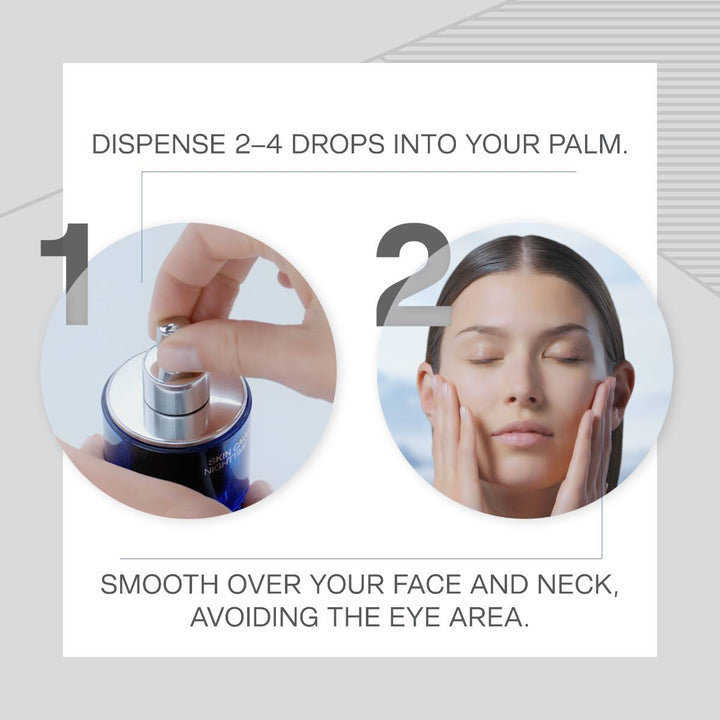 Apply with a sliding motion across the face, neck and décolleté. Only apply at night, and always use an SPF the following day.
