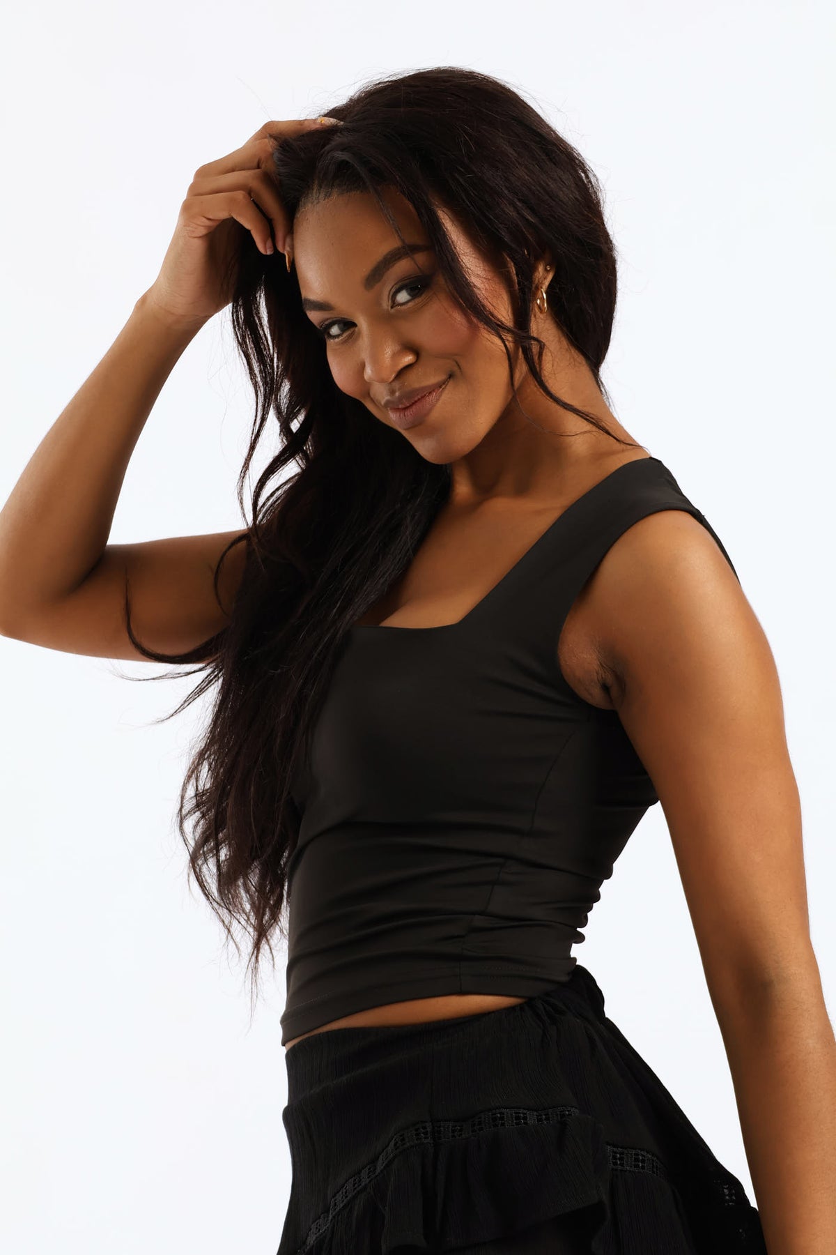 Skin Tight Square Neck Tank - Black