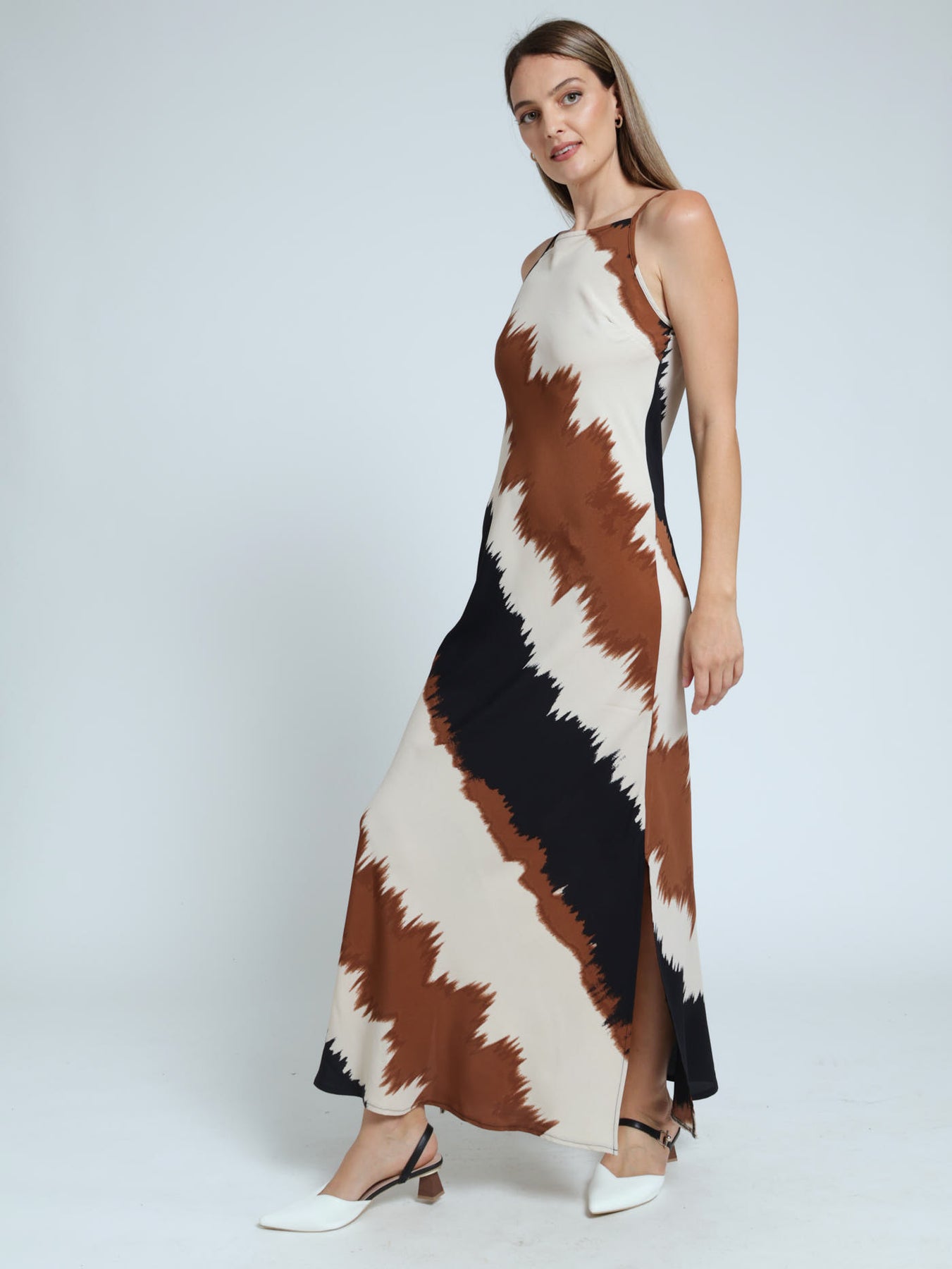 Sleeveless Maxi Slip Dress - Brown