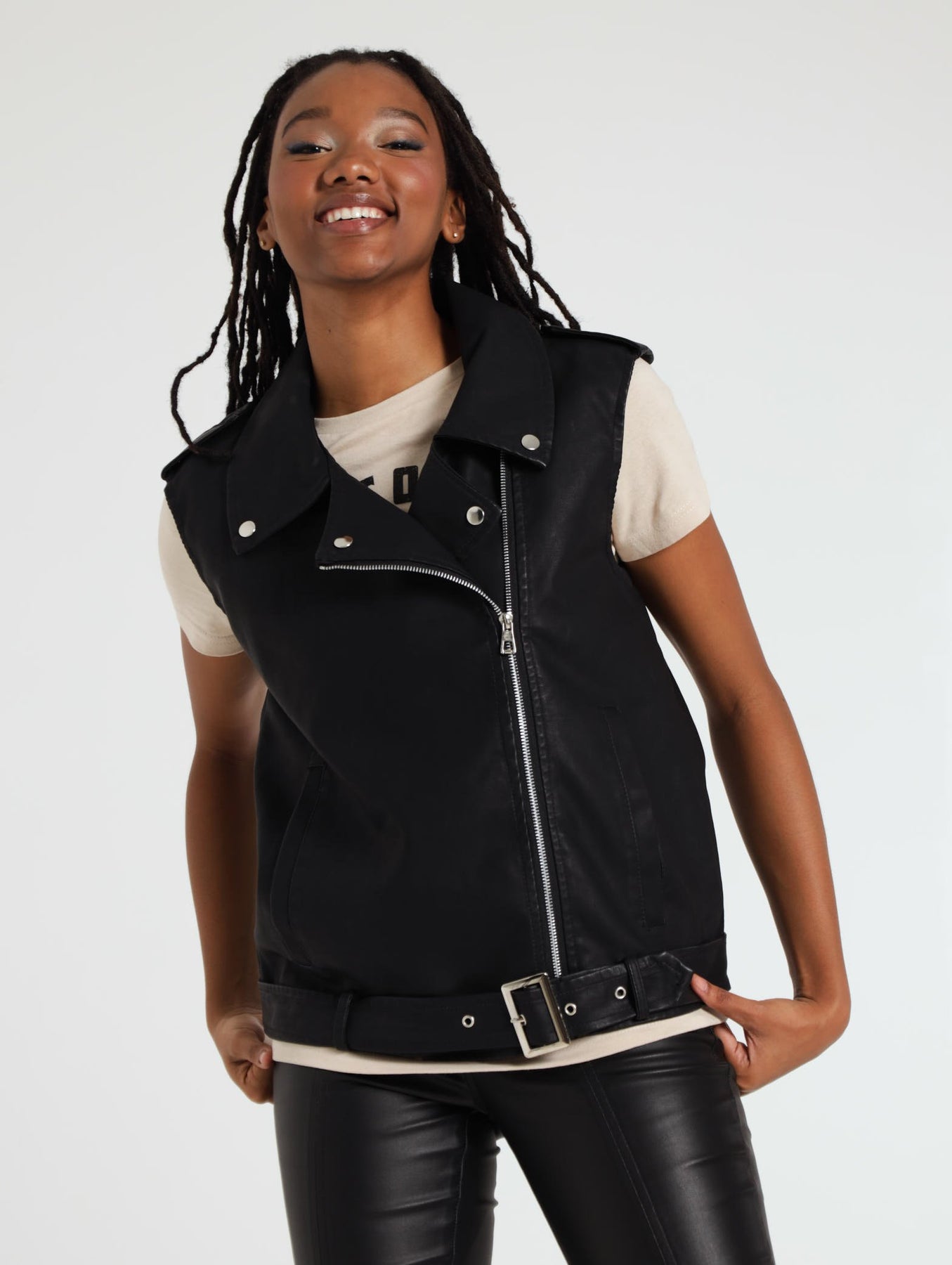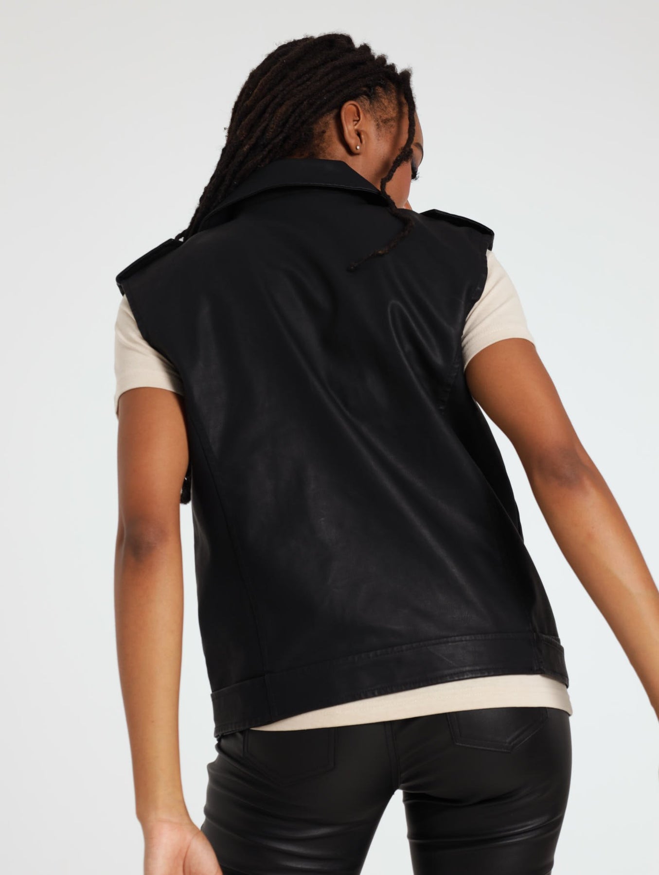 Sleeveless Pu Rider Jacket - Black