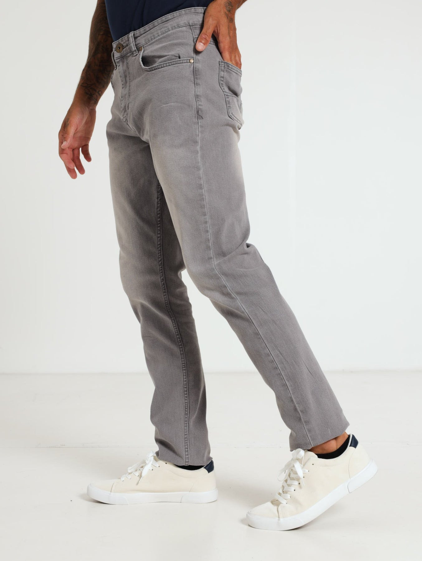 Step out in style with our Slim Fit Denim Jean - Grey! These jeans feature a comfortable fit and good quality for a look that's both fashionable and practical. Upgrade your wardrobe and feel confident in these versatile jeans.
