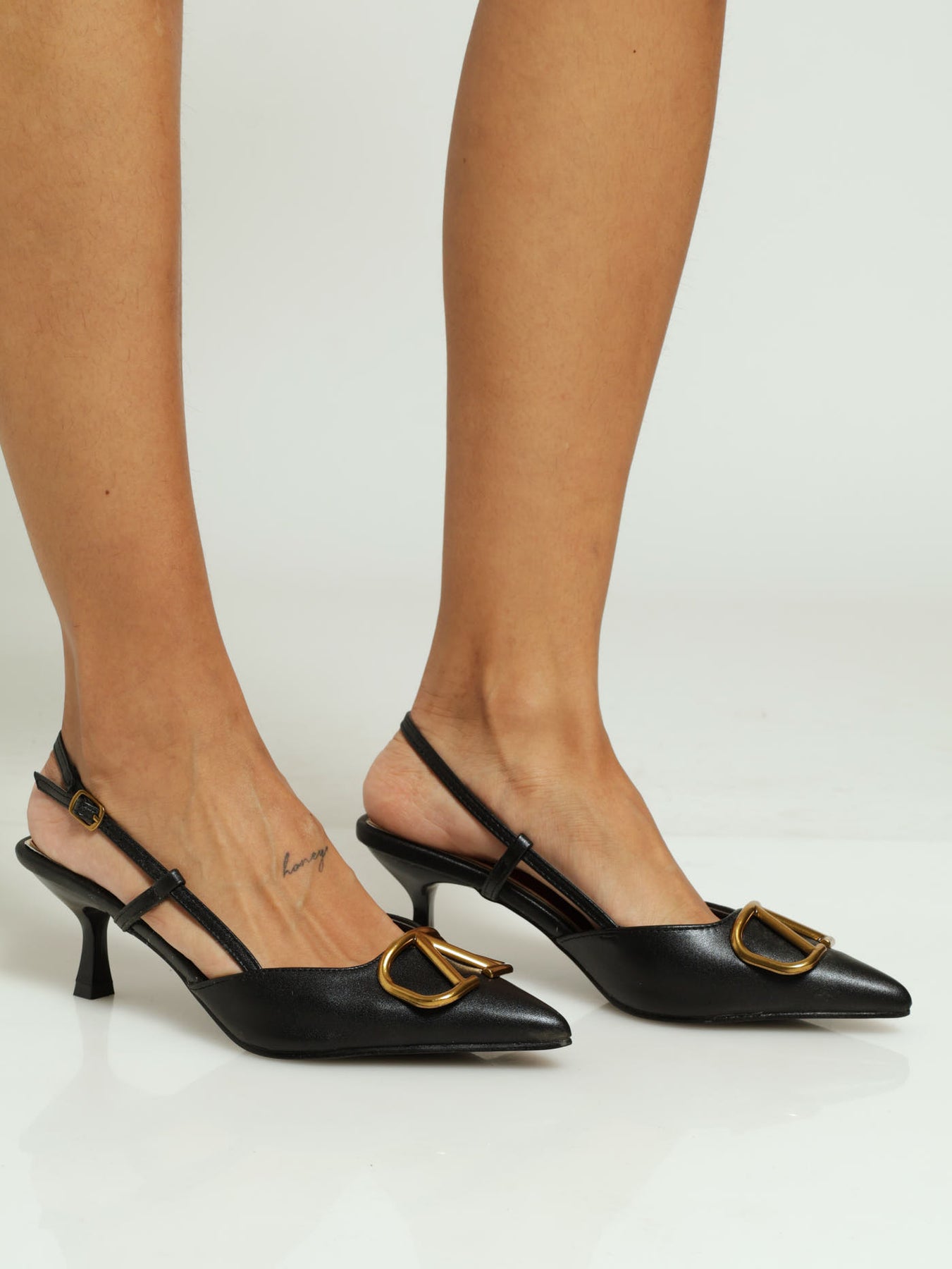 Square Vamp Red Sock Slingback Mule Heel - Black