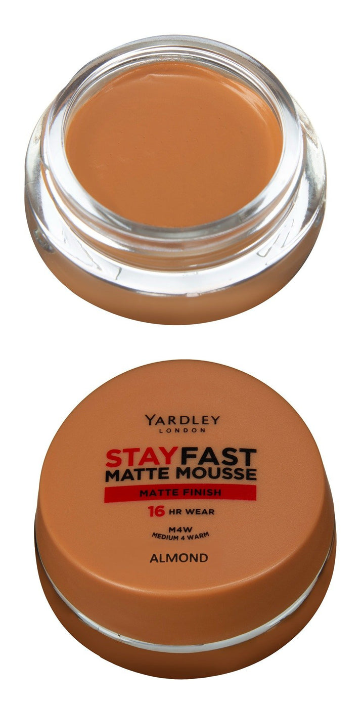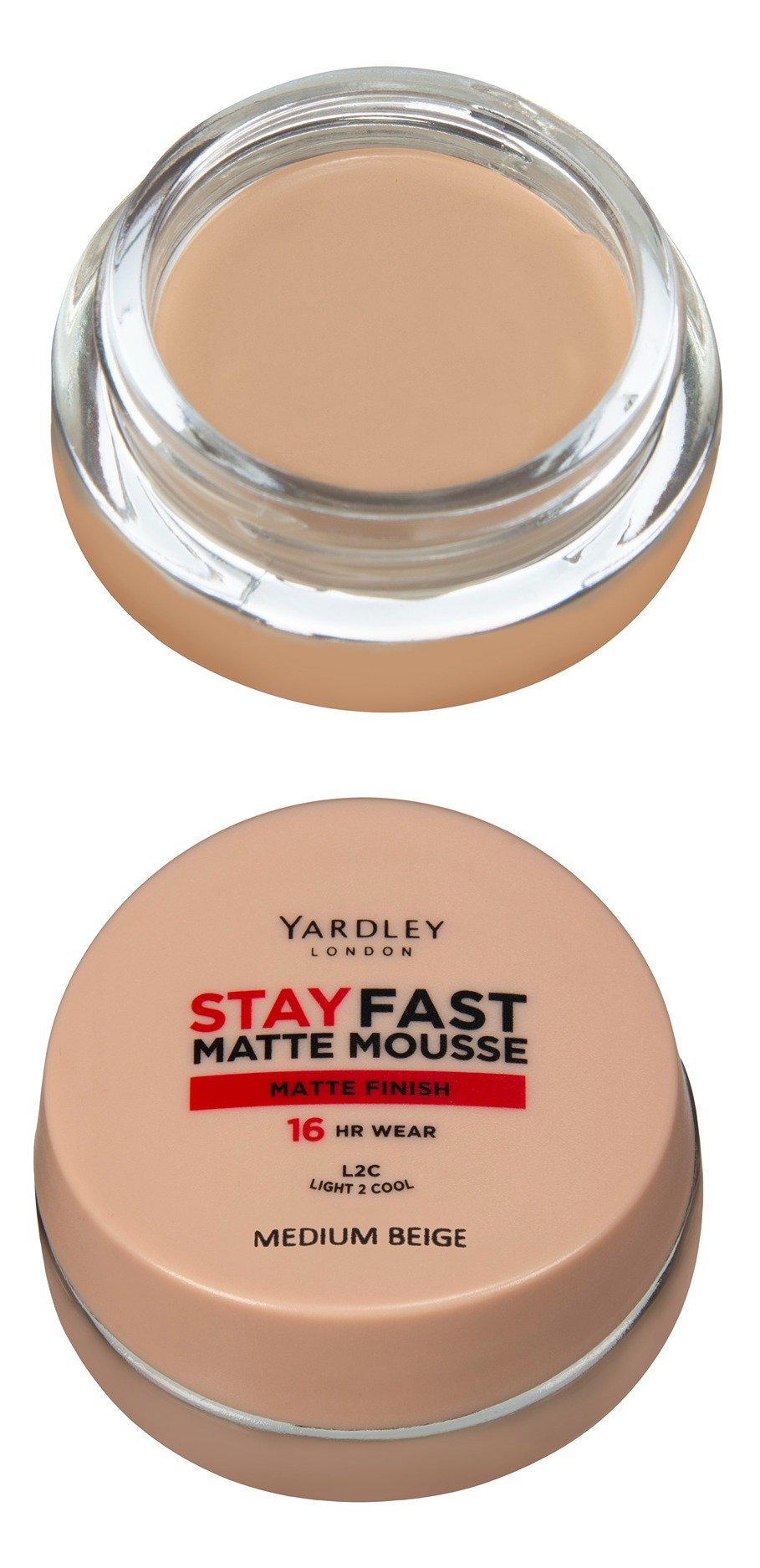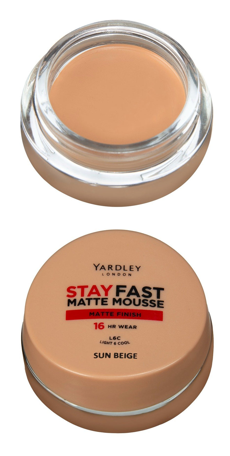 Yardley London Stayfast Matte Mousse SPF15 is a light-textured foundation that lasts for up to 16 hours. It provides medium to high coverage and helps to control oil, leaving skin with a natural matte appearance.