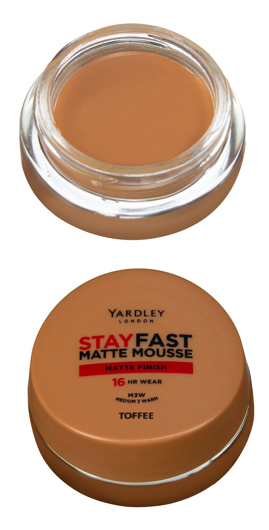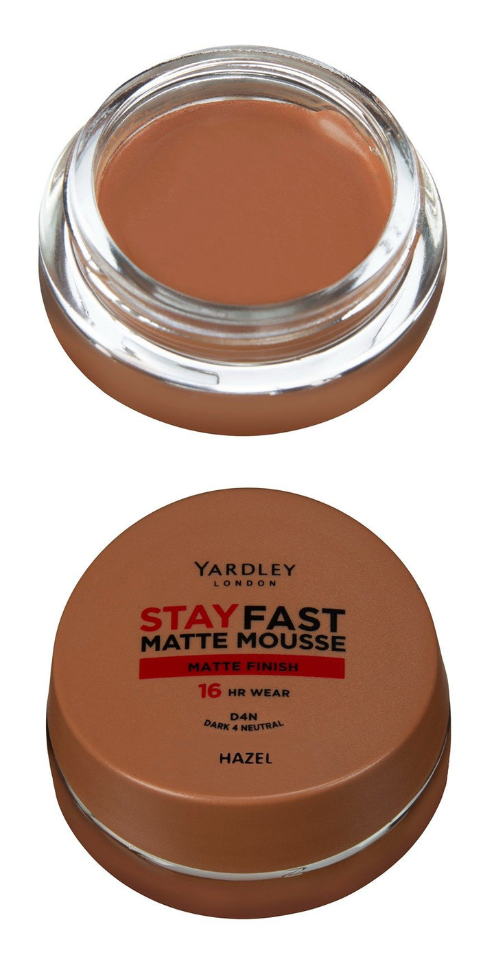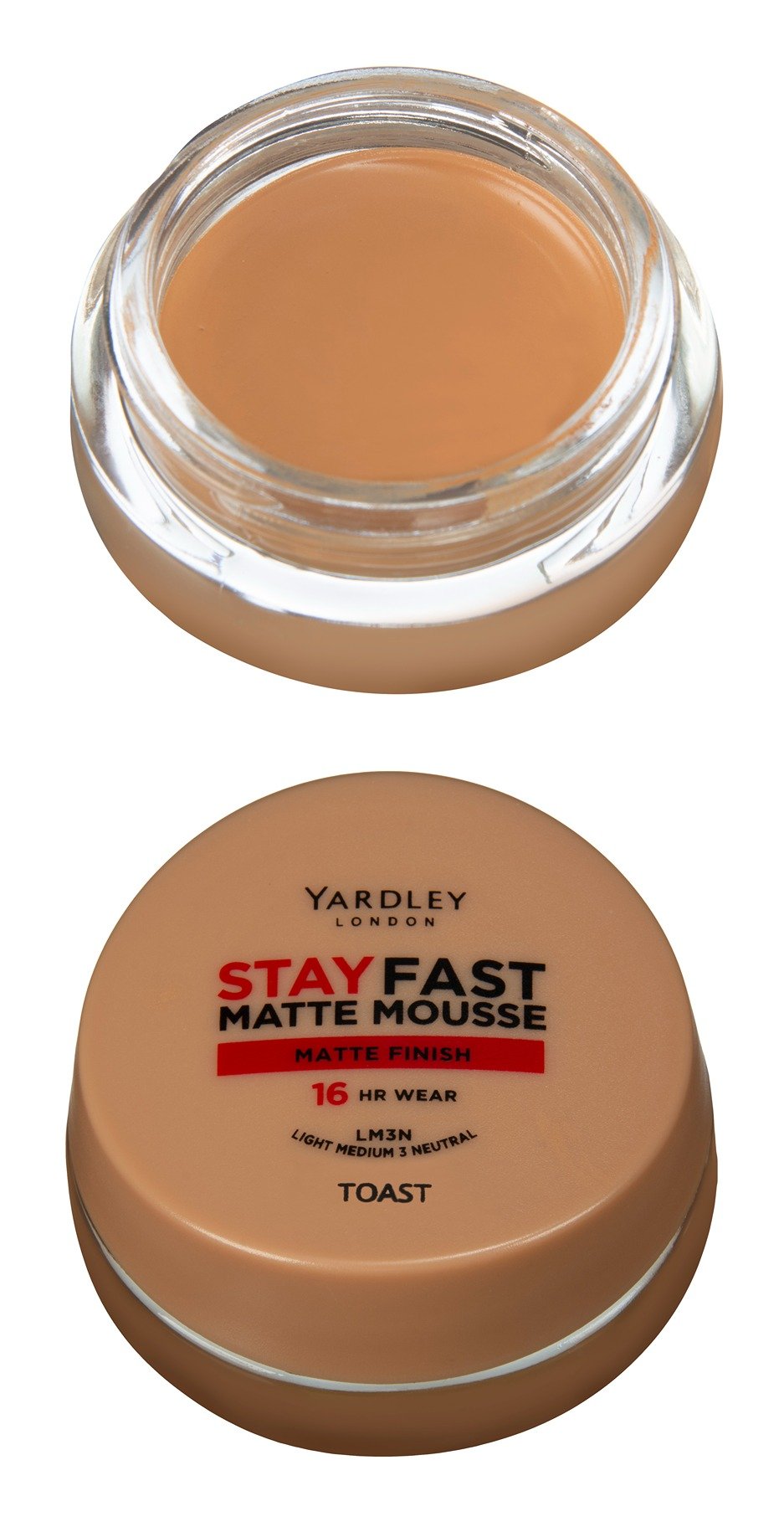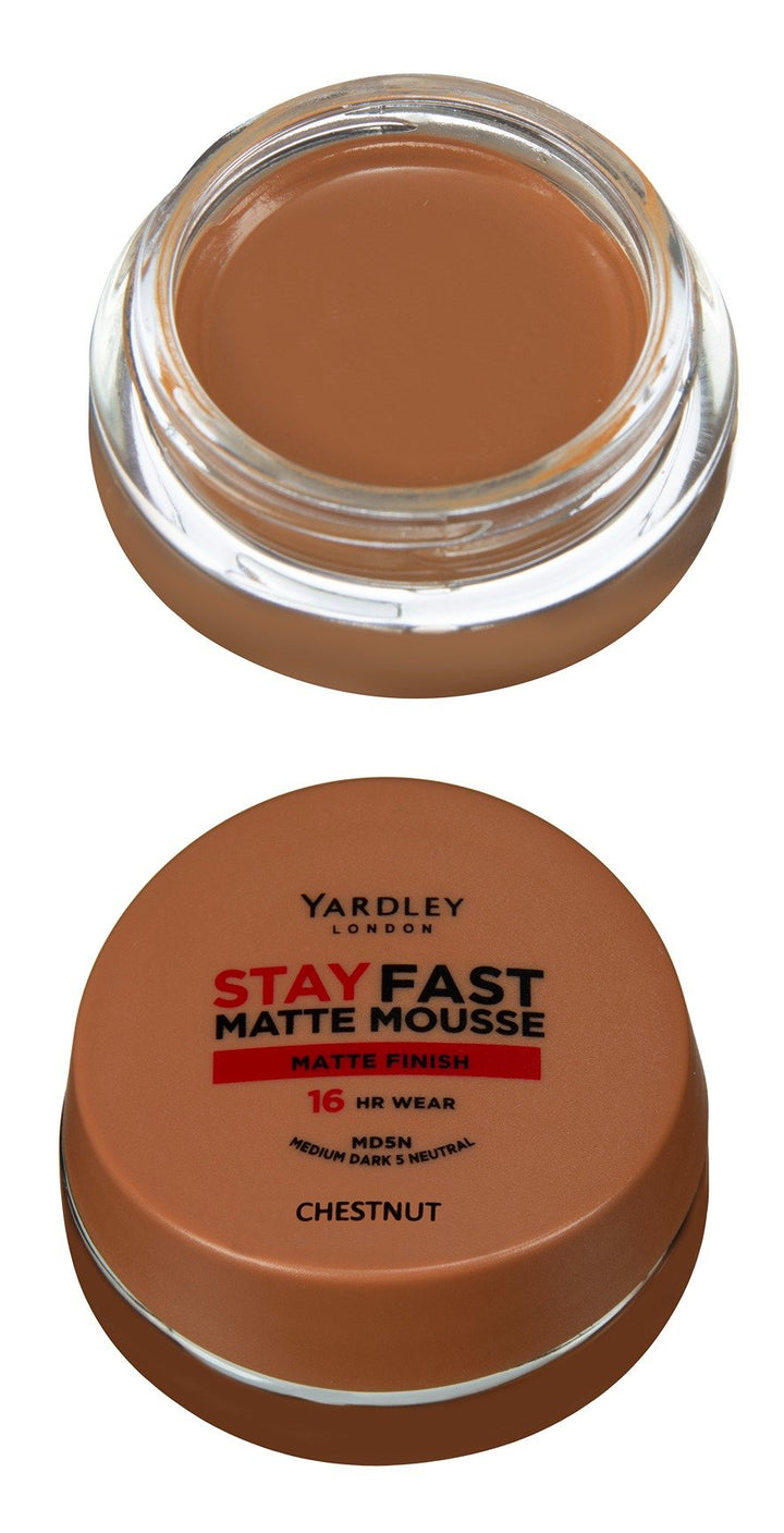 Yardley London Stayfast Matte Mousse SPF15 is a light-textured foundation that lasts for up to 16 hours. It provides medium to high coverage and helps to control oil, leaving skin with a natural matte appearance.