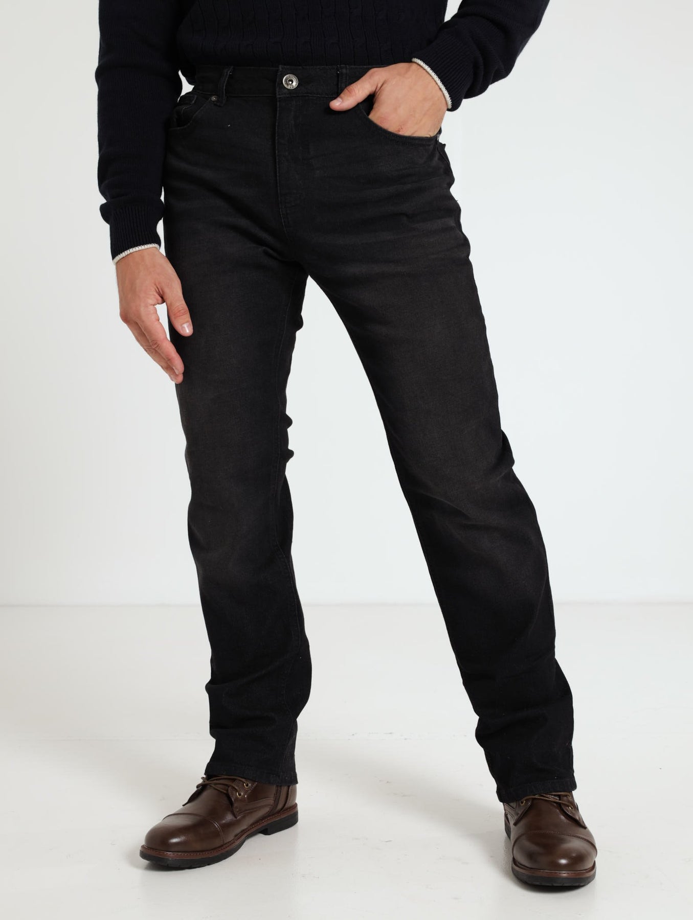 Experience unmatched comfort and quality with our Straight Fit Denim Jean in Black. The perfect blend of style and function, these jeans are designed for all-day wear. Slip into a comfortable fit and elevate your wardrobe with this must-have staple!